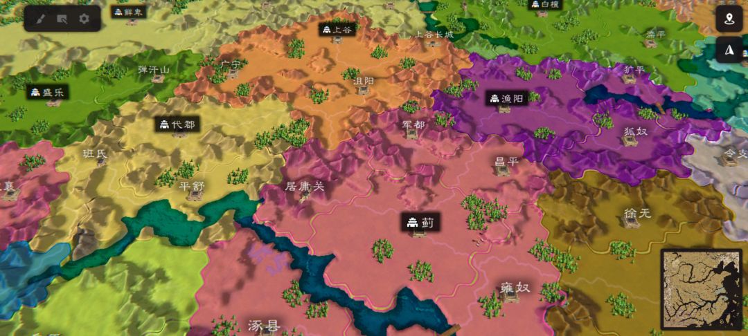每做一个郡都要让城池分布,城市距离(太密集我个人觉得很不好,出兵一回合跨越几个城离谱,感觉官方那种城市距离可玩性最好了)道路,山脉分布(舍弃了一大片一大片的山脉,个人觉得虽然比较真实但是不美观