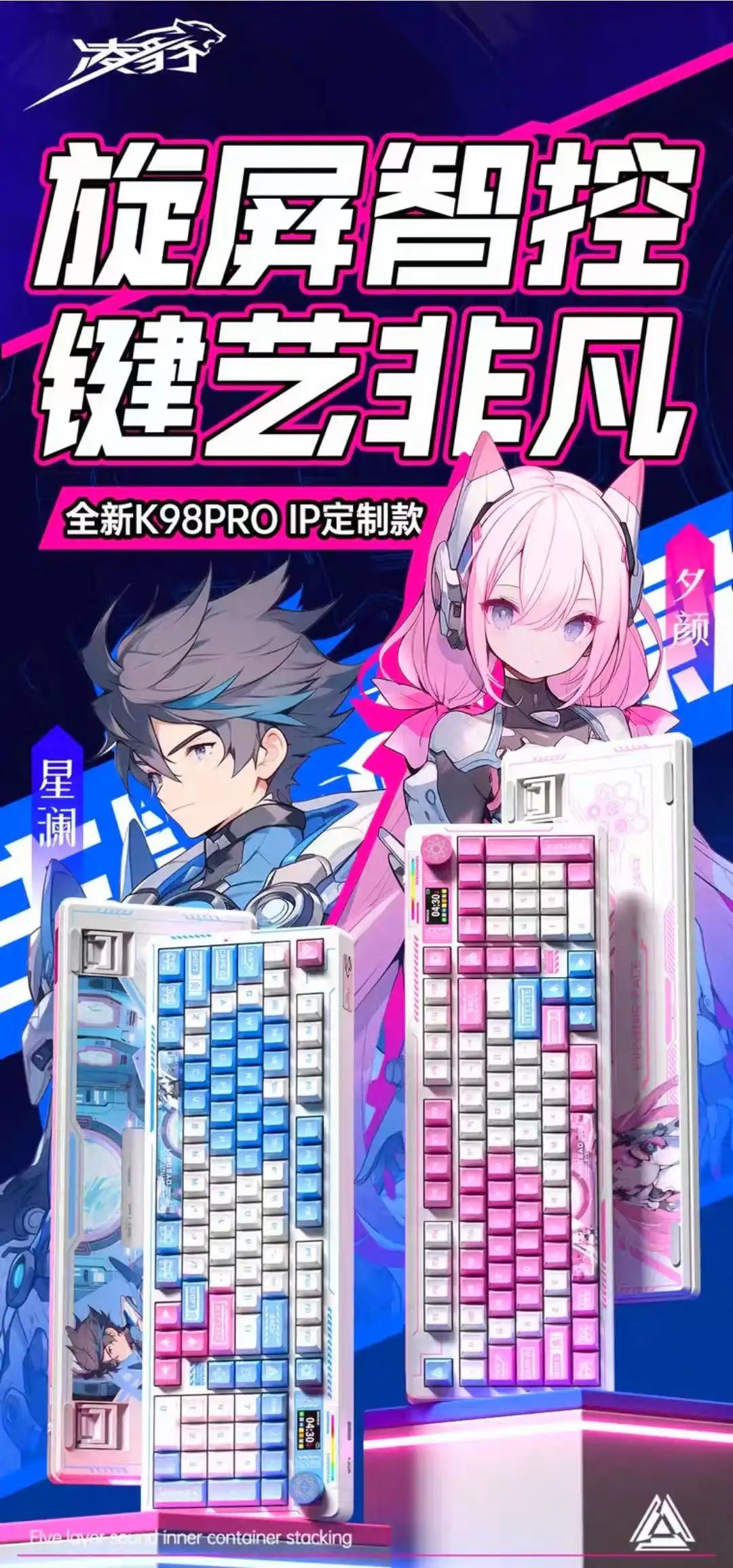 凌豹作为市面上为数不多,对于二次元客制化的键盘有着比较深入理解的厂商,他与vk瓦尔基里一度被称之为国产两大二次元客制化键盘天花板。作为市面上为数不多的追求高颜值二次元键盘,凌豹原本可以仅仅依靠颜值取胜,但是他们始终致力于把性能卷到行业前列,其中K98pro就是一个很典型的代表。