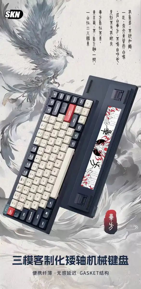 能将《山海经》元素与外设相结合,SKN可以说牢牢的拿捏住了国人的审美,此次,恰逢618大促,SKN又推出了全新的矮轴键盘——毕方