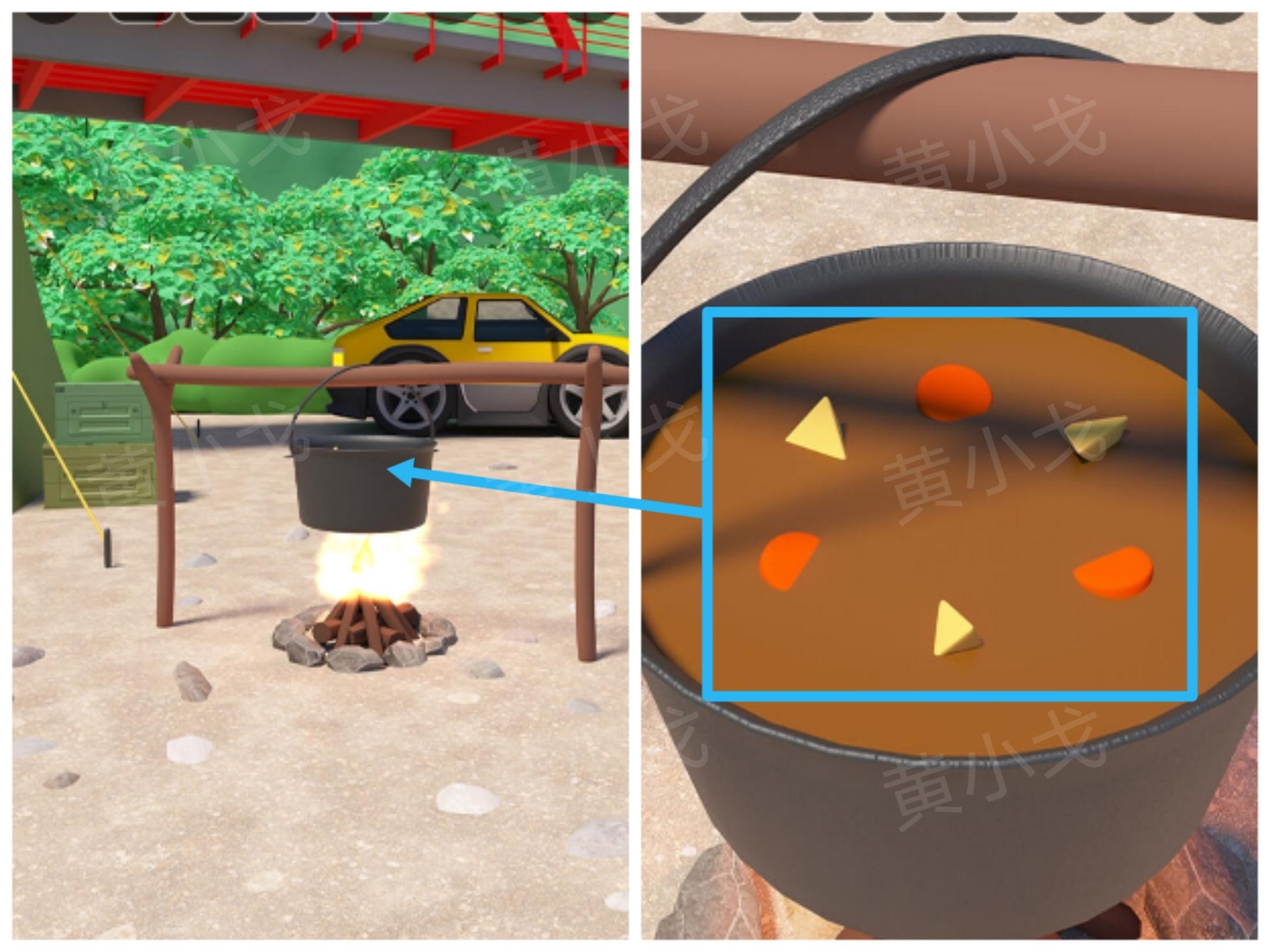 7.点击移动餐车旁边的火堆上的锅,盖上【盖子】