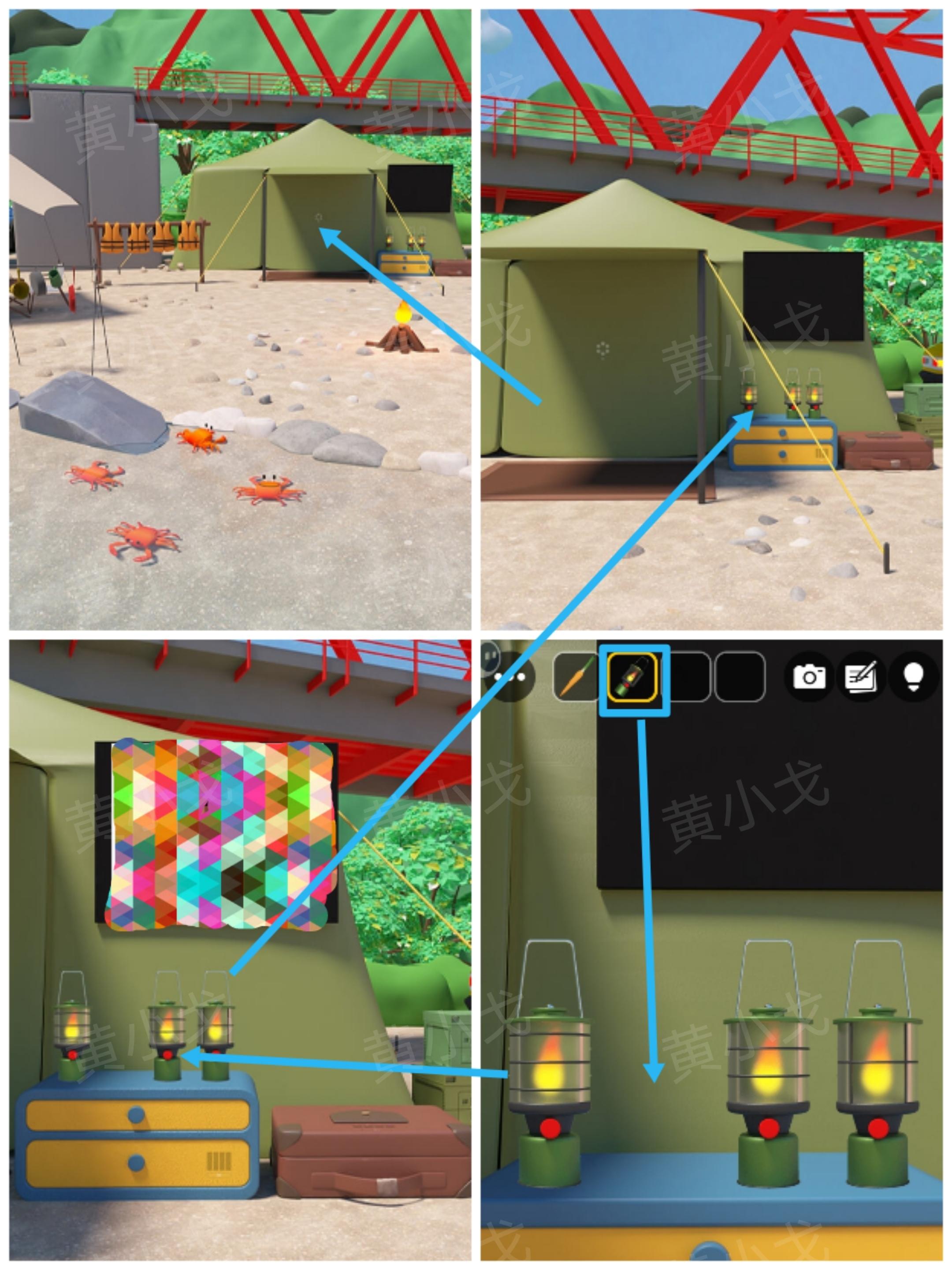 15.点击帐篷旁边的柜子,放上【手提灯】