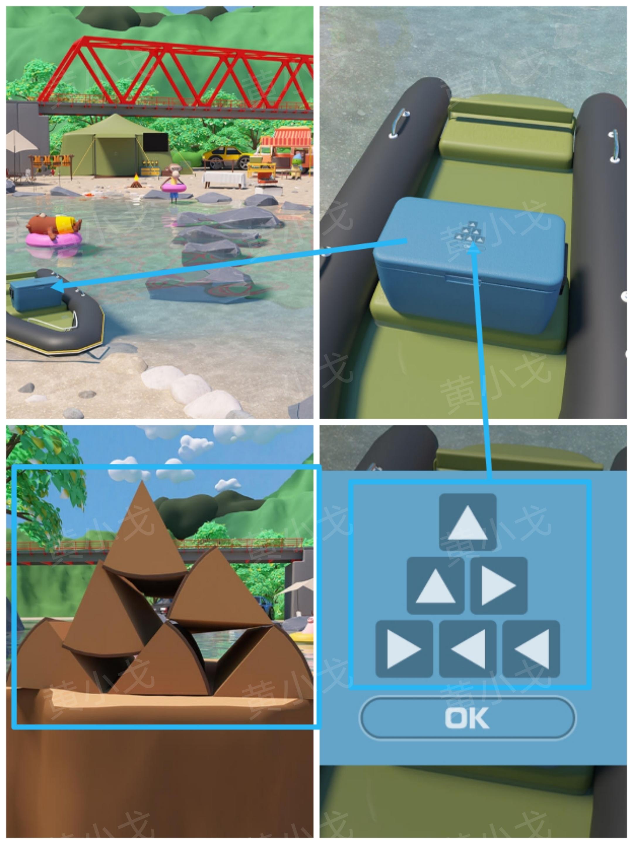 2.查看橡皮艇旁边的汀步,获得线索