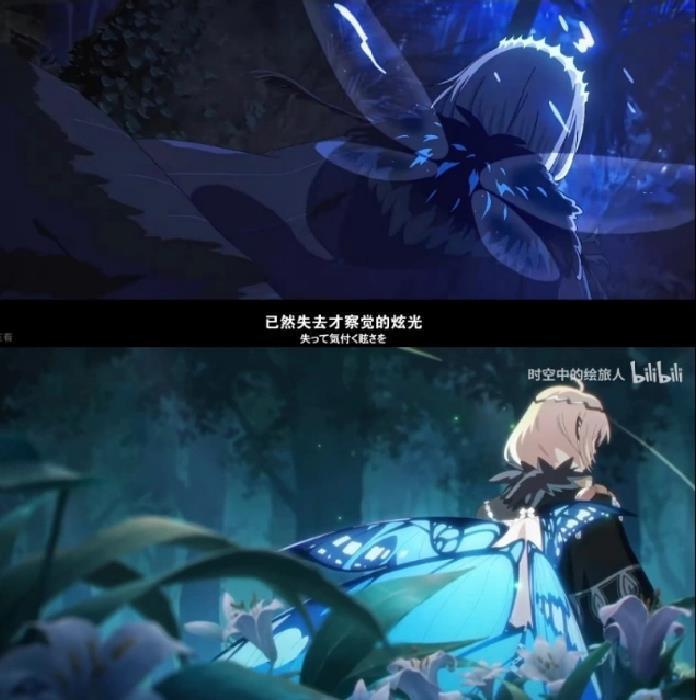 主要是绘旅人路辰其实是长发,然后这截图是被一些玩家质疑明明游戏立绘很小的毛领,在pv里变大,导致背影看起来变成了短发,男主有了奥伯龙的既视感。