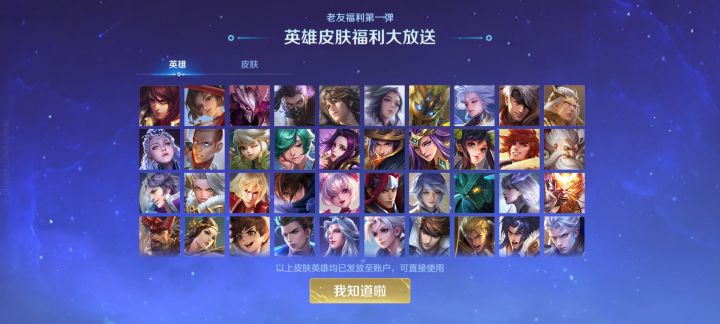 体验服福利放送中,体验服全英雄永久伴生皮肤登录即送,快来领取吧~