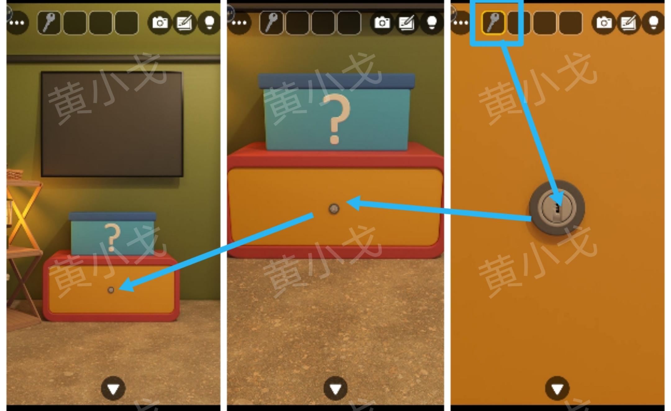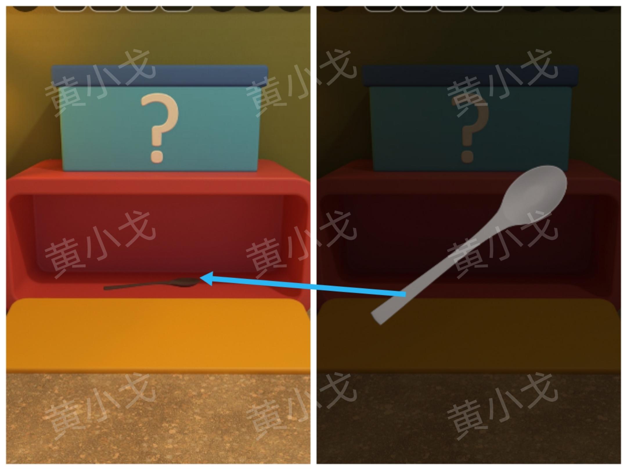 23.用【钥匙】打开蓝色盒子下方的柜子,获得【勺子】