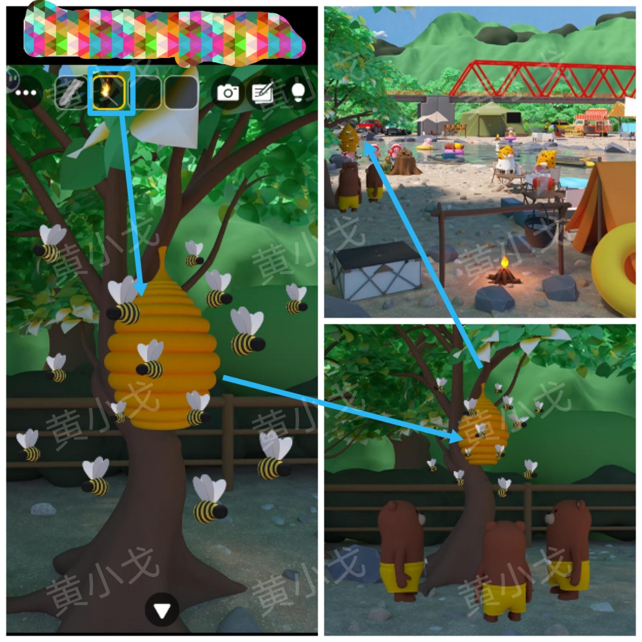 7.点击树上的蜂窝,用【点燃的火把】驱赶蜜蜂