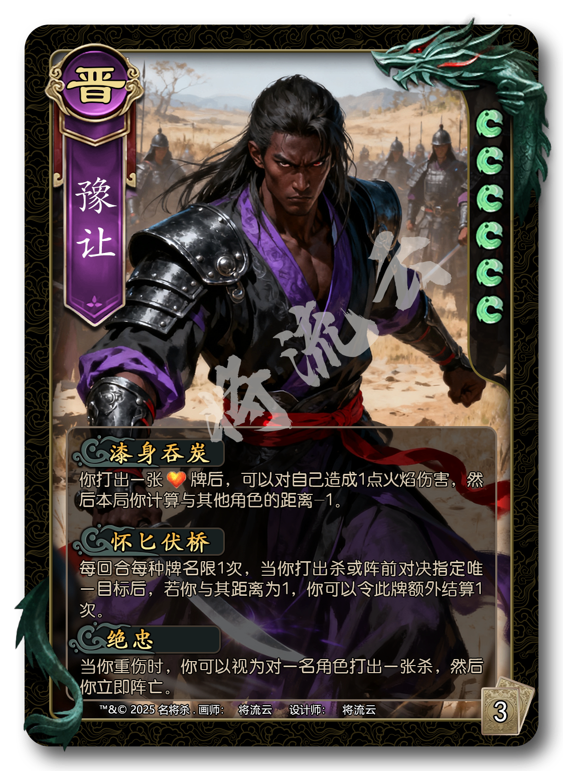 本次设计灵感来自《刺客列传》,对聂政、荆轲、豫让、专诸进行了相关创作。本人还额外在各刺客技能中加入了小彩蛋,算是我的一点小心思