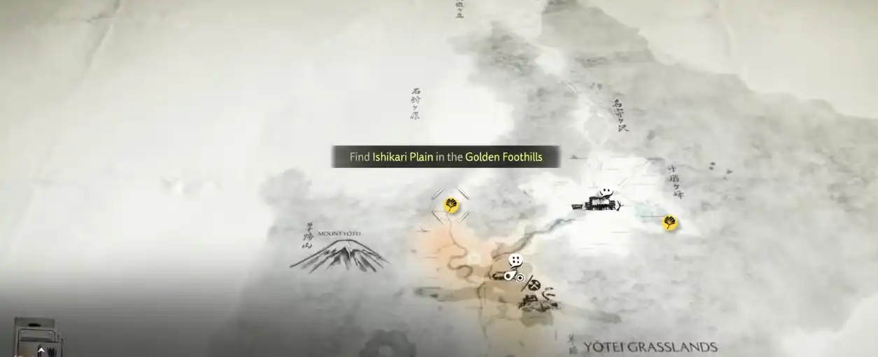 玩家在离开老旅馆后,往东北方向出发,这样就能到达金足丘陵的石狩平原。这开启了向鬼复仇的主线任务,但这还不是最重要的部分。石狩平原是一片广阔的区域,在这片区域内,玩家会遇到新的 NPC,他们有自己的冒险故事和任务。玩家还能找到有关雨月说书人的传闻,他能给玩家“不死武士传说”任务,完成该任务玩家就能获得早期游戏所需的盔甲。它有独特的效果,能延长完美格挡和完美闪避的时间窗口,增加击倒伤害,并在击倒时恢复生命值,因此是早期游戏的最佳盔甲。
