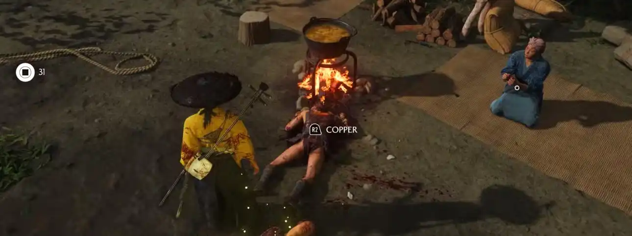 在前往任务目标的途中会遇到很多NPC,但有一个需要帮助的是太郎。这个年轻人怀揣着创业的梦想,在老客栈前正被浪人骚扰。与浪人交谈可以解救太郎(让他能继续搜刮尸体)。救了太郎之后,玩家可以与他交谈出售物品并进行交易,从而购买能增强独特能力和构建的符咒,所以一定要帮帮这孩子。