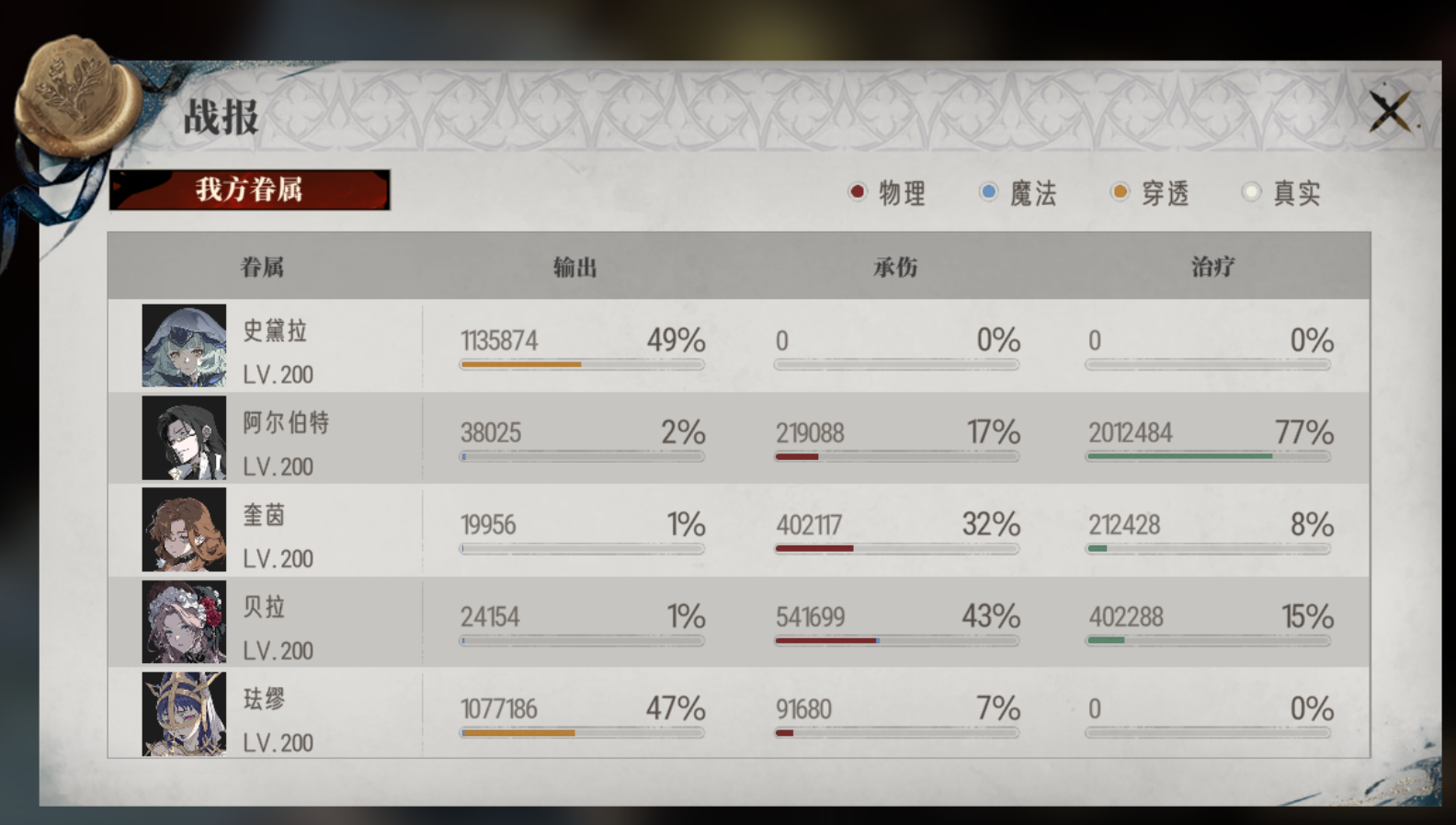 穿透队:与史黛拉、阿尔伯特构建穿透队,这个队伍的2名核心眷属都可从最近的卡池定向获取。清杂能力出色,主线、爬塔均适用,但单体爆发稍有欠缺(毕竟是AOE队)。