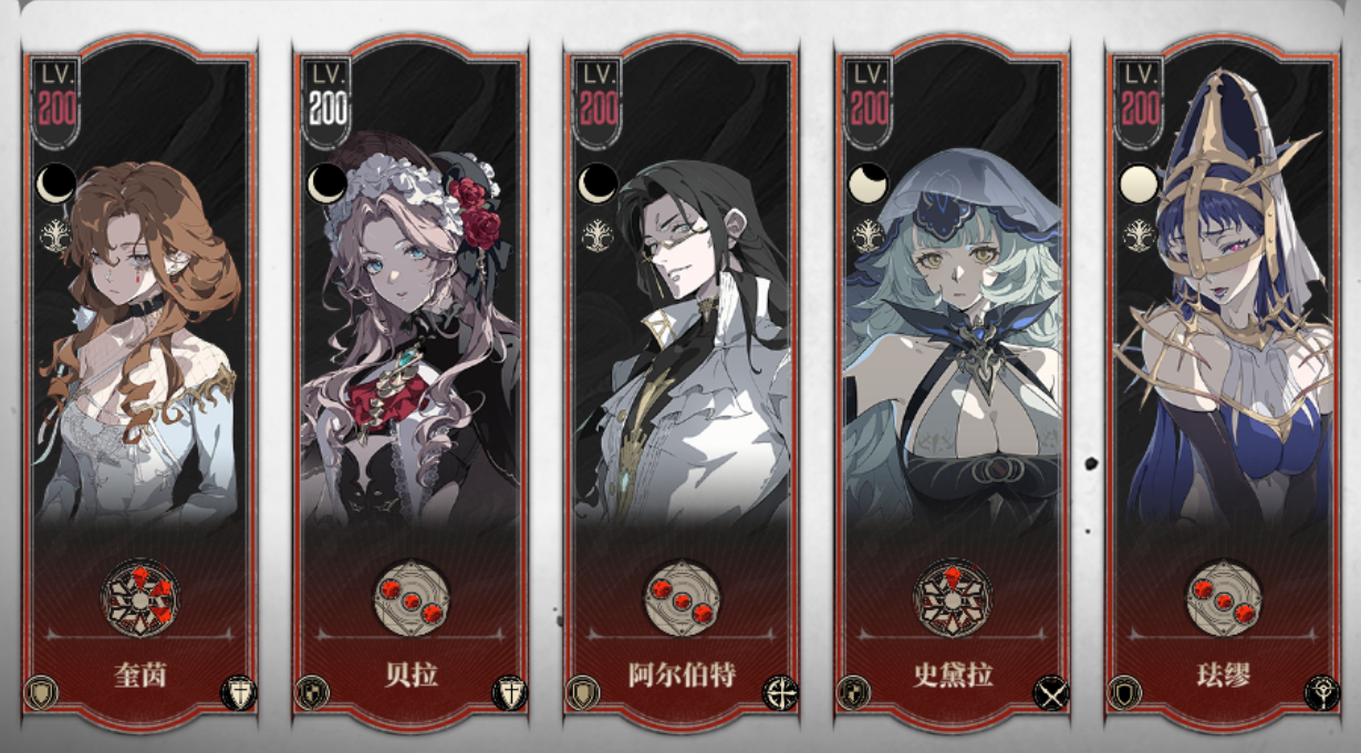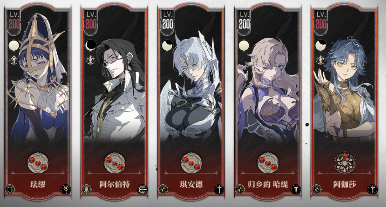 阿尔伯特易伤,阿伽莎聚怪、降低物理防御,琪安德平A挂流血不放奥义。奥义轴为“阿尔伯特→阿伽莎→珐缪→归乡的哈缇”,让归乡的哈缇在血月状态下释放奥义结算DOT。这支队伍可以用来打氏族围猎,清杂、单体输出都不错,主线可用穿透队。