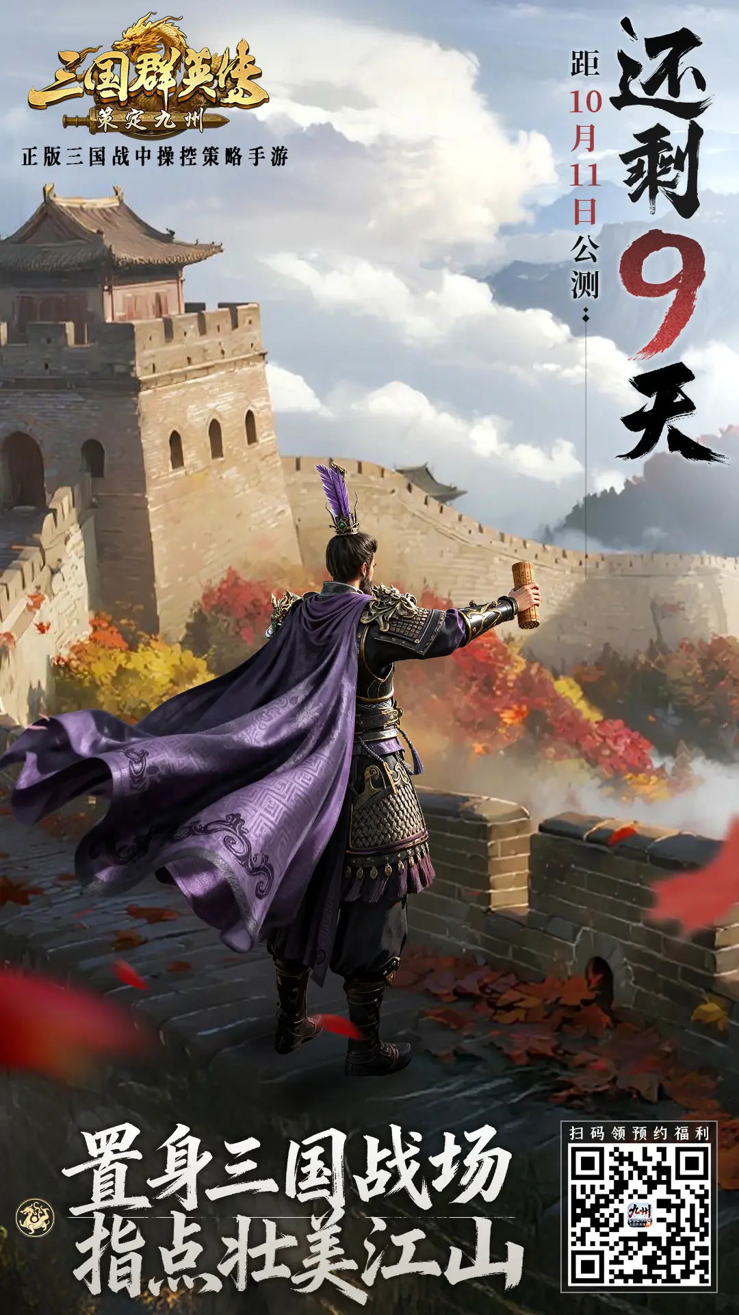 主公,可还记得与《三国群英传:策定九州》的约定?这个国庆假期,想必不少主公和九妹一样,一边悠闲度假,一边默默倒数——再过9天,就是10月11日,我们终于要在九州重逢了!九妹光是想想,心跳都快了几分!
