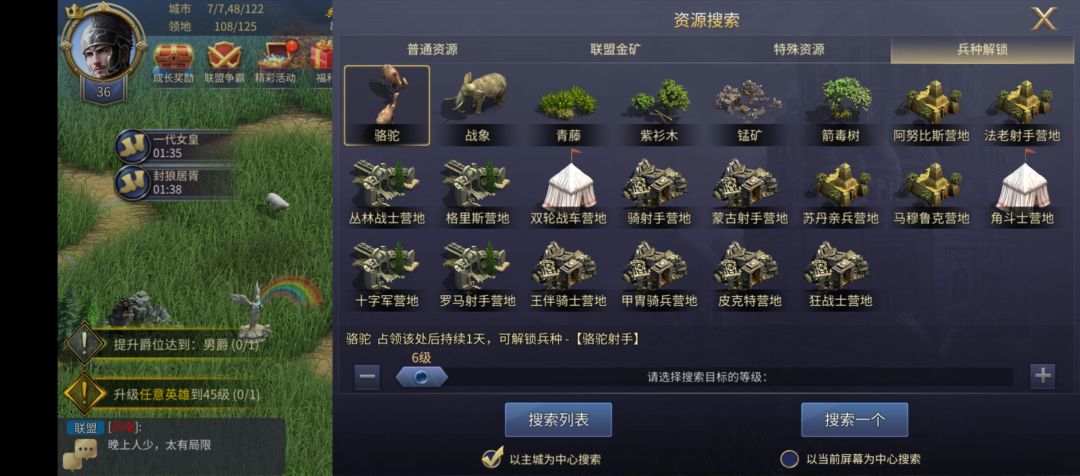 ①搜索第四列有兵种解锁,之前专门出了攻略写这个,不做赘述,特别提醒,有些兵种是需要先进行解锁,才能够在旅馆中出现,例如,丛林象兵,没有解锁的时候,在旅馆中是看不到的。