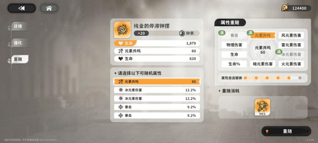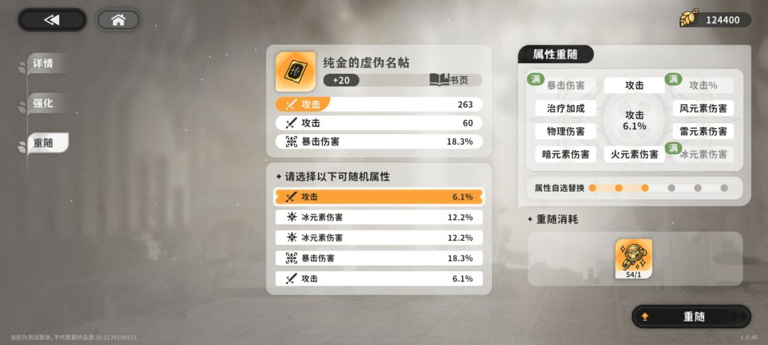 主词条固定,副词条可以重随,6次之后没满意的可以自选一个属性,每个部位有限制。只能在属性重随选。