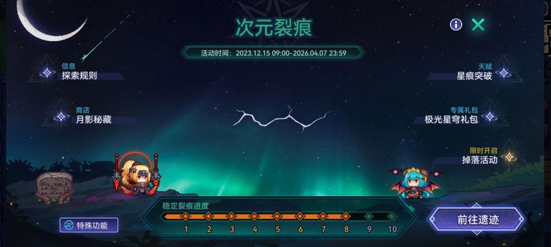 通关地宫有概率遇到使徒,对话进入裂隙地宫,每轮开始时有一个进度条: