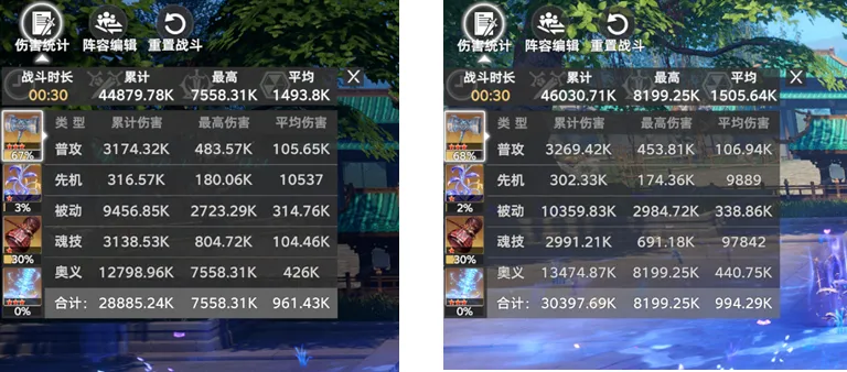 那么首先在带了唐昊神赐魂环的前提下,这个阵容30秒的爆发伤害大概就在45000K-47000K左右徘徊,这个数据大家可以先行参考一下。