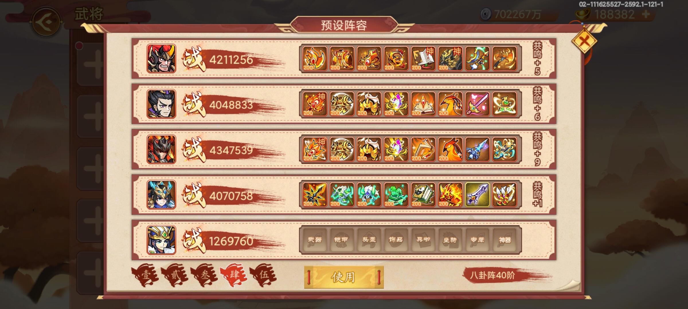 顺便分享一下阵容供参考:根据情况换着来,玄武阵乌龟流用的最少,即便不养也比较容易500胜,但是在八卦典韦自爆阵出来之前乌龟阵还是很有用的。基本只有带玄黄的阵容无解,愿意刷脸的,带仙貂蝉无玄黄的也能打。