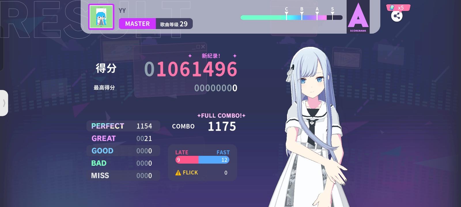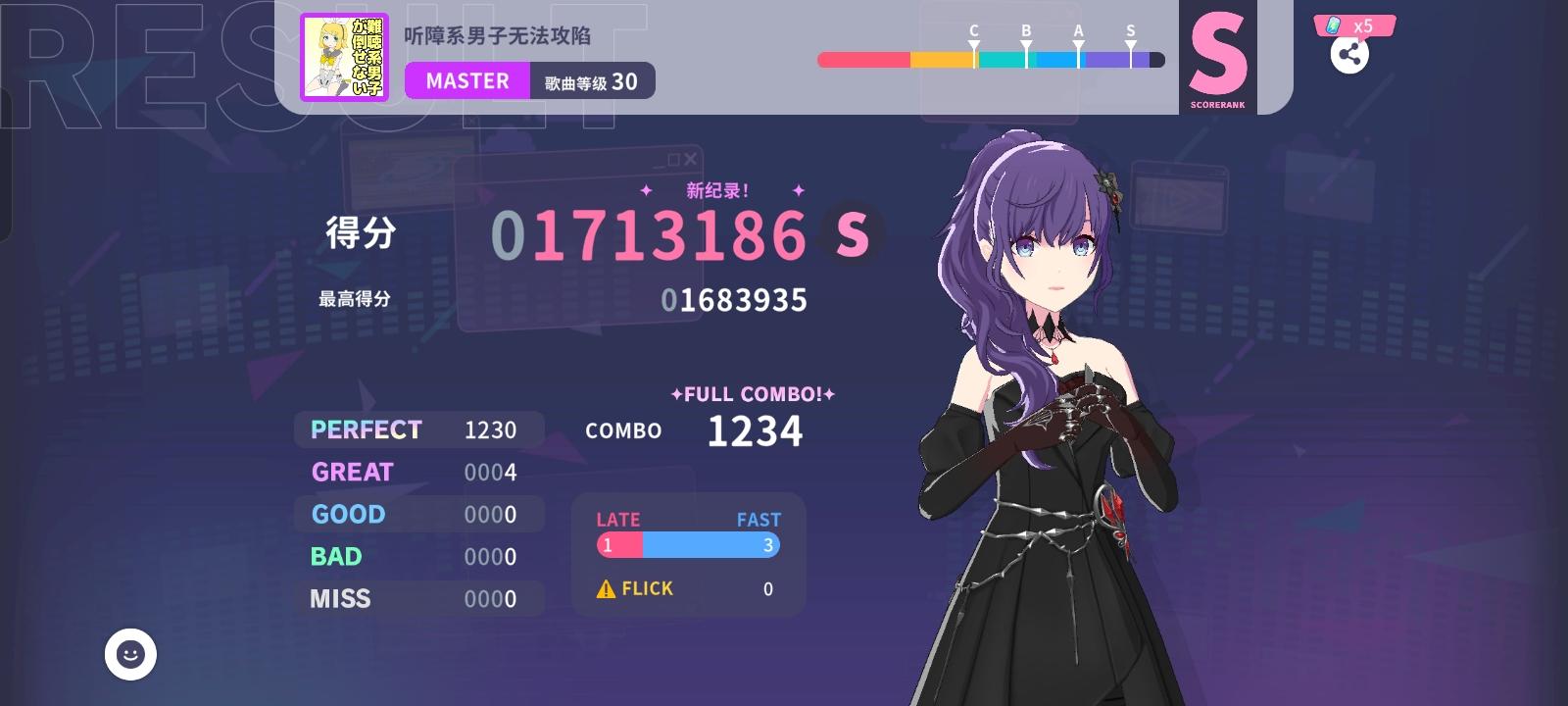 说了这么多,其实只是说说自己入坑以来的感想和心里话,虽然谈不上什么🐉,但是我自己还是对今天的成绩比较满意的,至少我这次不是像lanota,邦邦那样玩一会就退坑,至少我坚持下来了,对吧