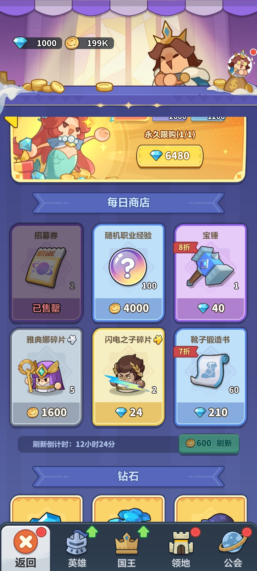 每日商店可以用金币刷新商品,出现金币购买的才买