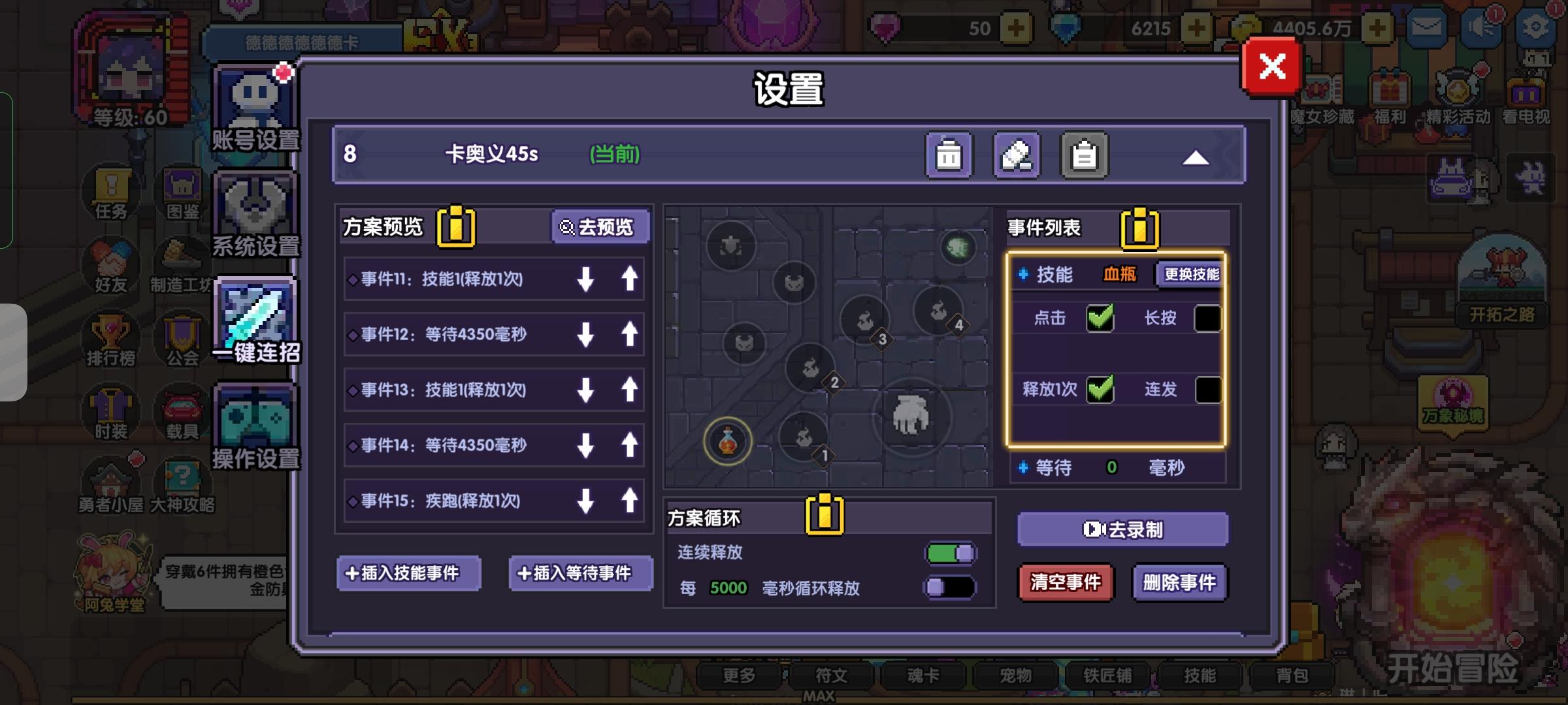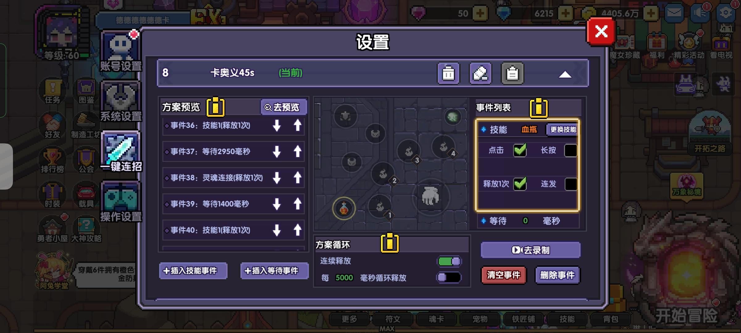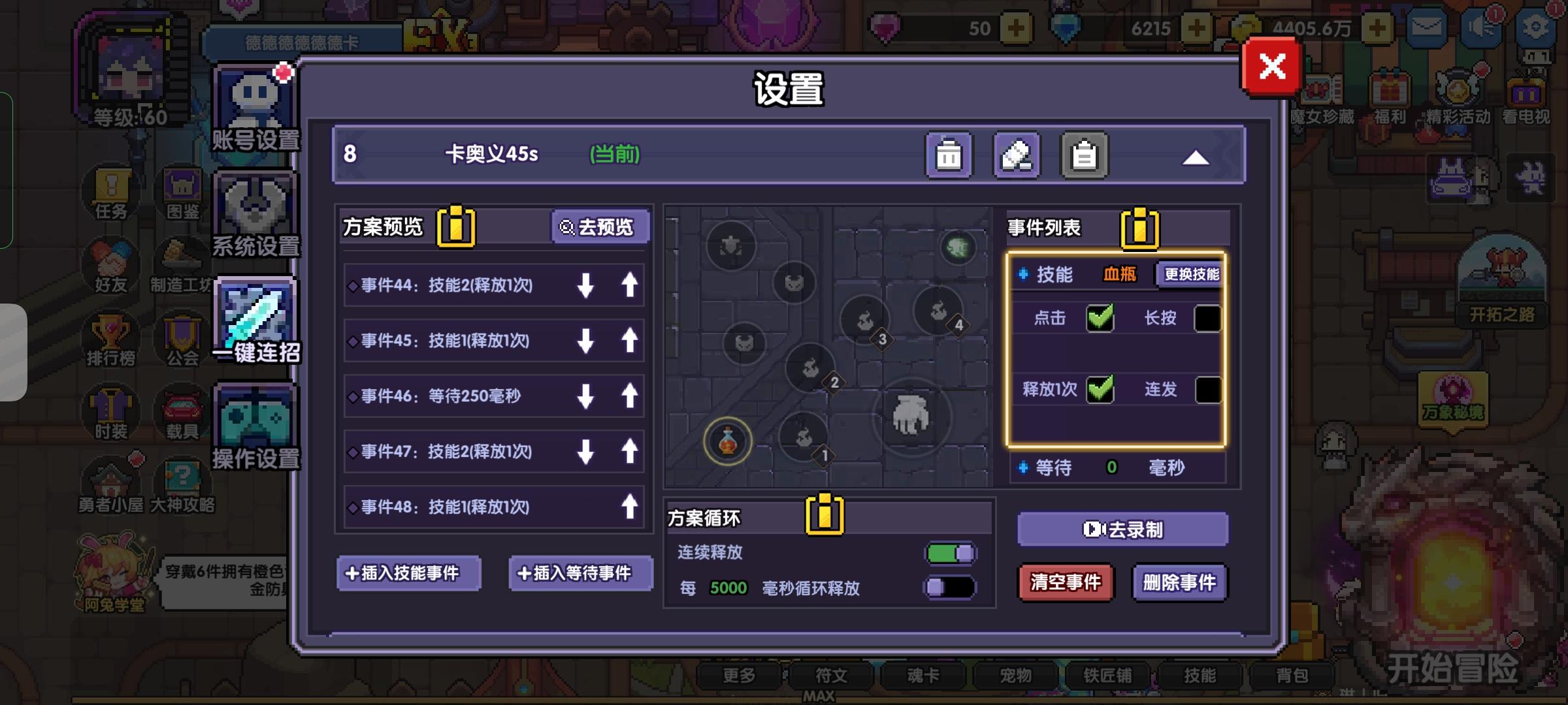 下面是技能位置及连点设置,总计48个事件