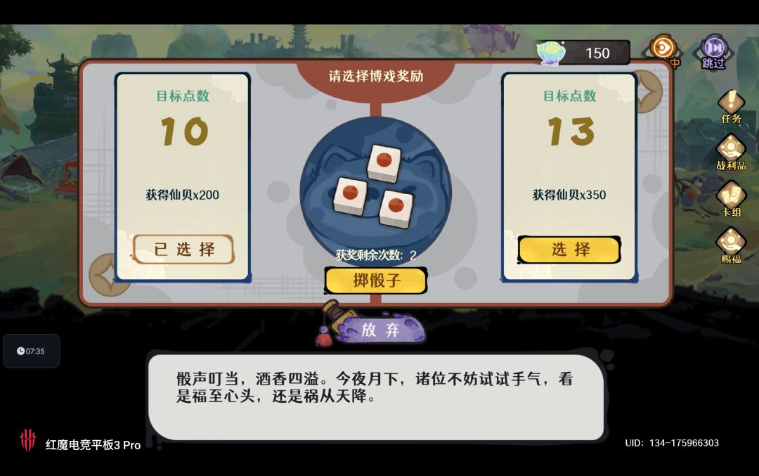 技巧①开局投骰子技巧,每次开局会有两次投骰子的机会,这也是最快积累仙贝的方法。仙贝的数量对于第一层购买赐福、攻击力、爆伤或其他属性的增益都是必需品。通过Deepseek的算法可得到最优解,如下图↓