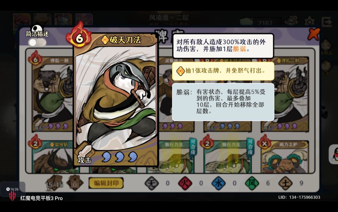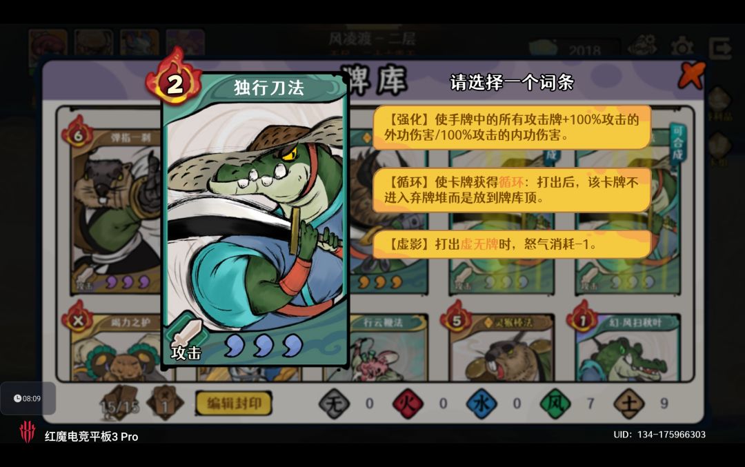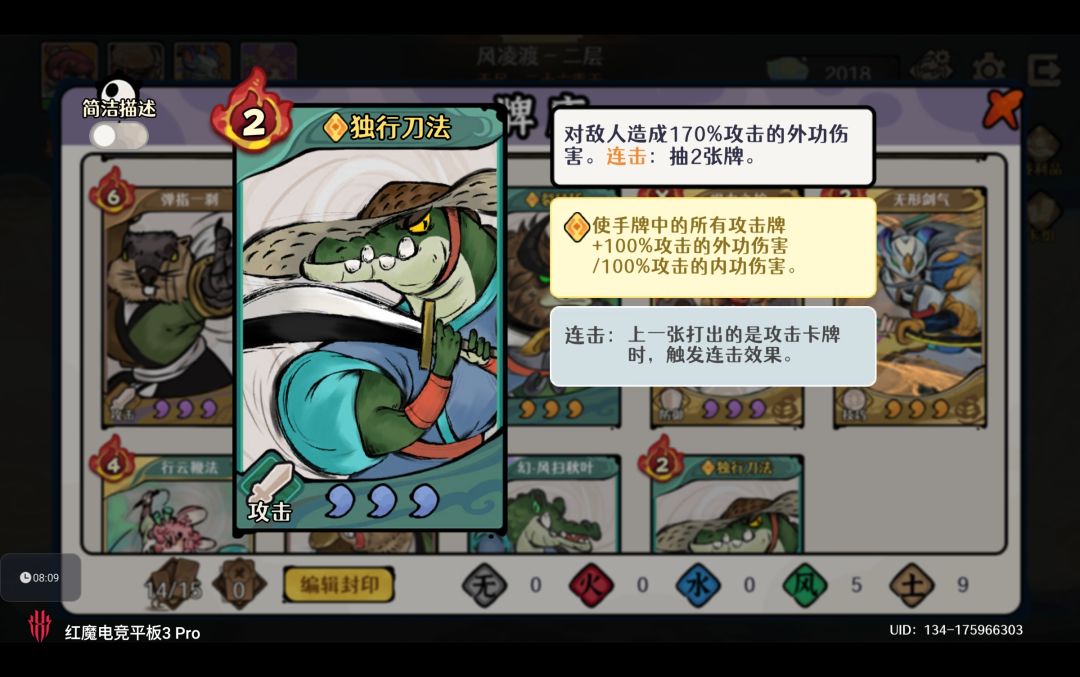 风系4张:2张烈风斩+2张独行刀法
