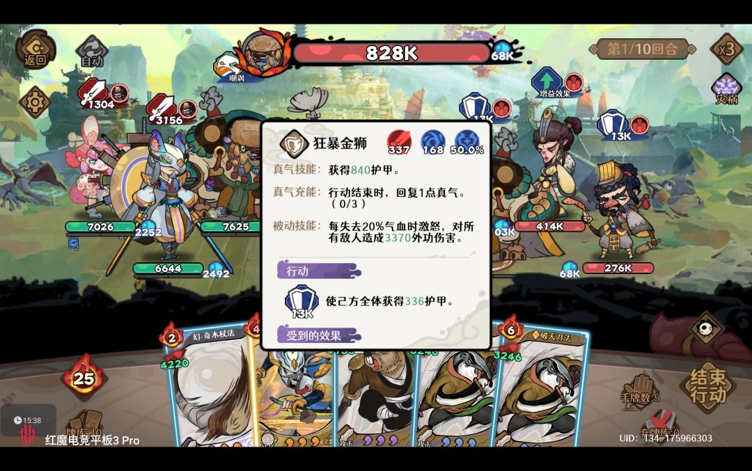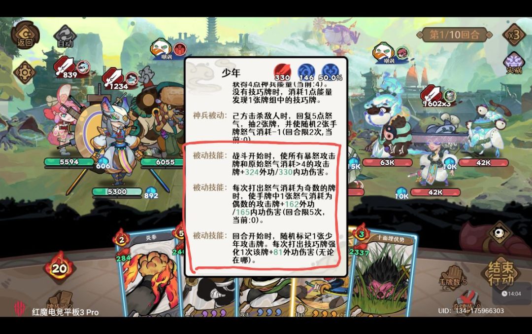 手牌6张武学怒气为奇数为2张,偶数为4张