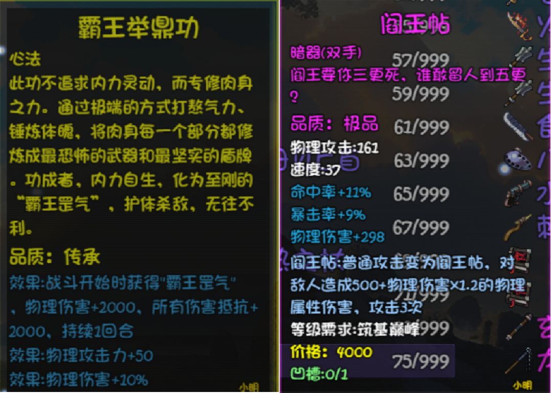 掉落强力心法,武器等