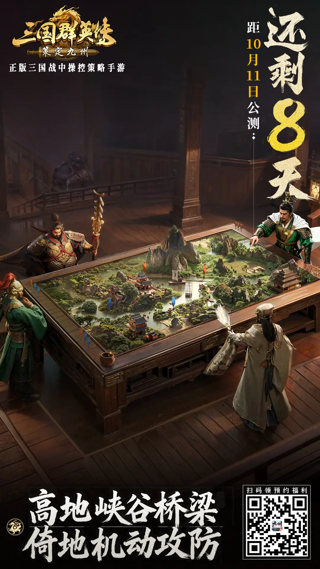 福利不停,备战不止!讨论刘备的雄才大略,不如亲自来九州一战!现在扫描下方二维码参加「备战盟」活动,提前组建你的最强联盟,还能与盟友共赢4008抽,参与「摸金寻宝」还有京东卡、诸葛亮武将手办、10g真金元宝等你来抽!公测时还有「亿元补贴」活动等你来参加哟!