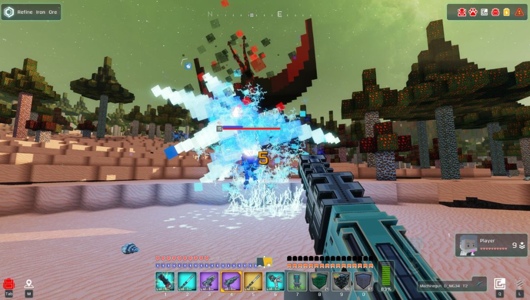 在游戏里我们将从一无所有开始,探索、挖矿、伐木、采集、制造、建造、战斗等等一条龙全都得安排上,这点和市面上众多模拟生存游戏差不多。只是《Cubic Odyssey》毕竟有着类似《我的世界》的框架,在这方面显得更加如鱼得水,无论是哪个环节,都能进行得相当流畅。
