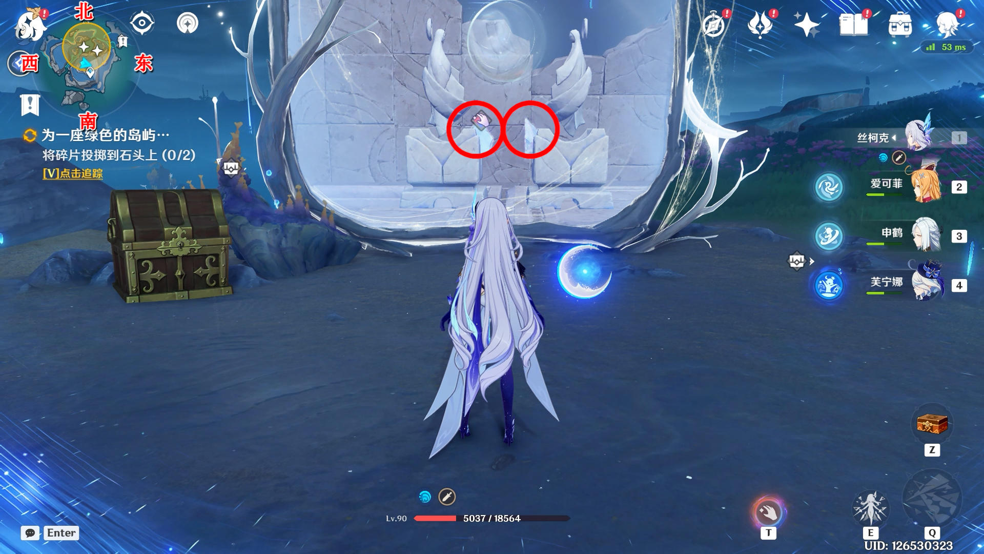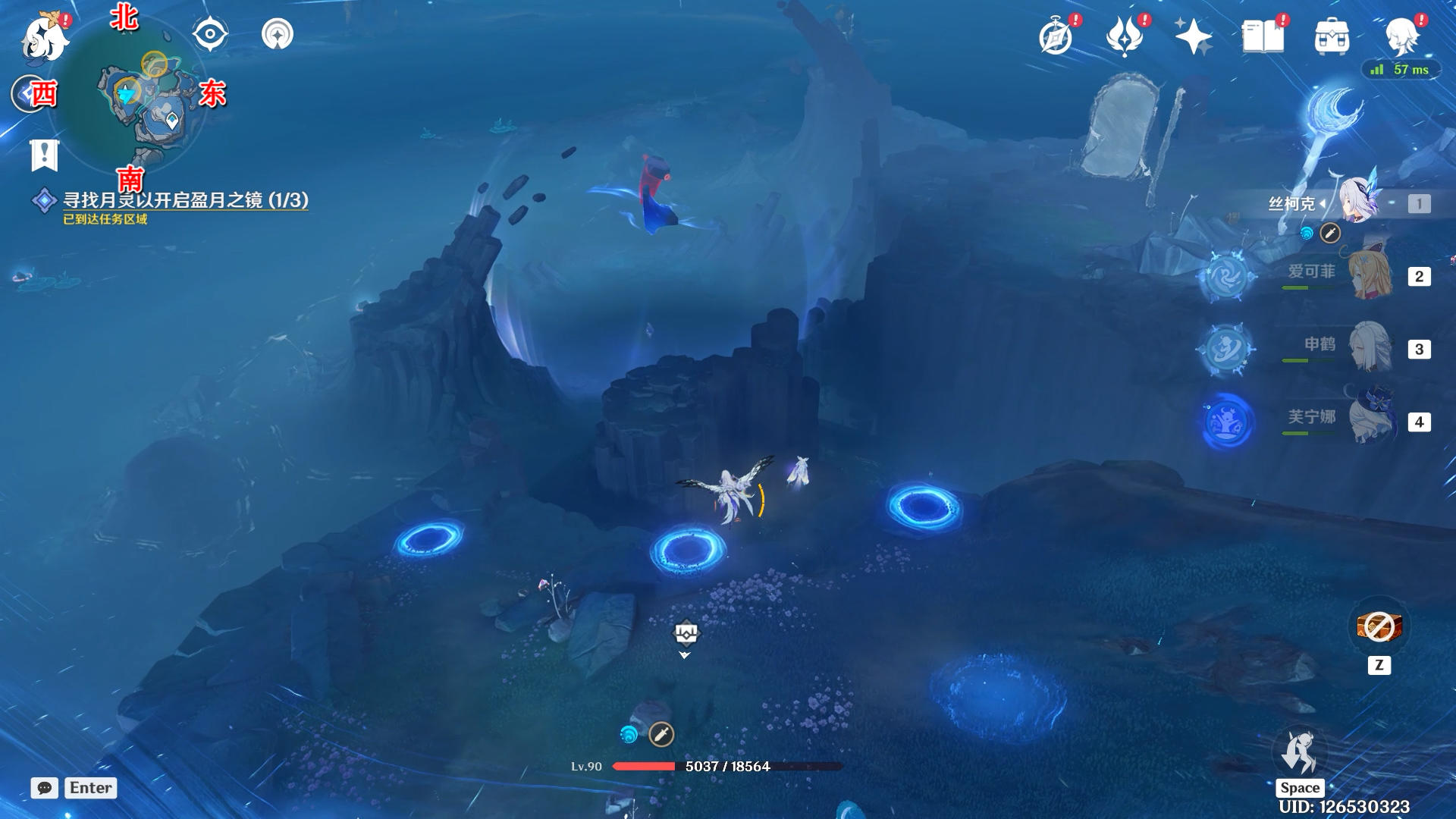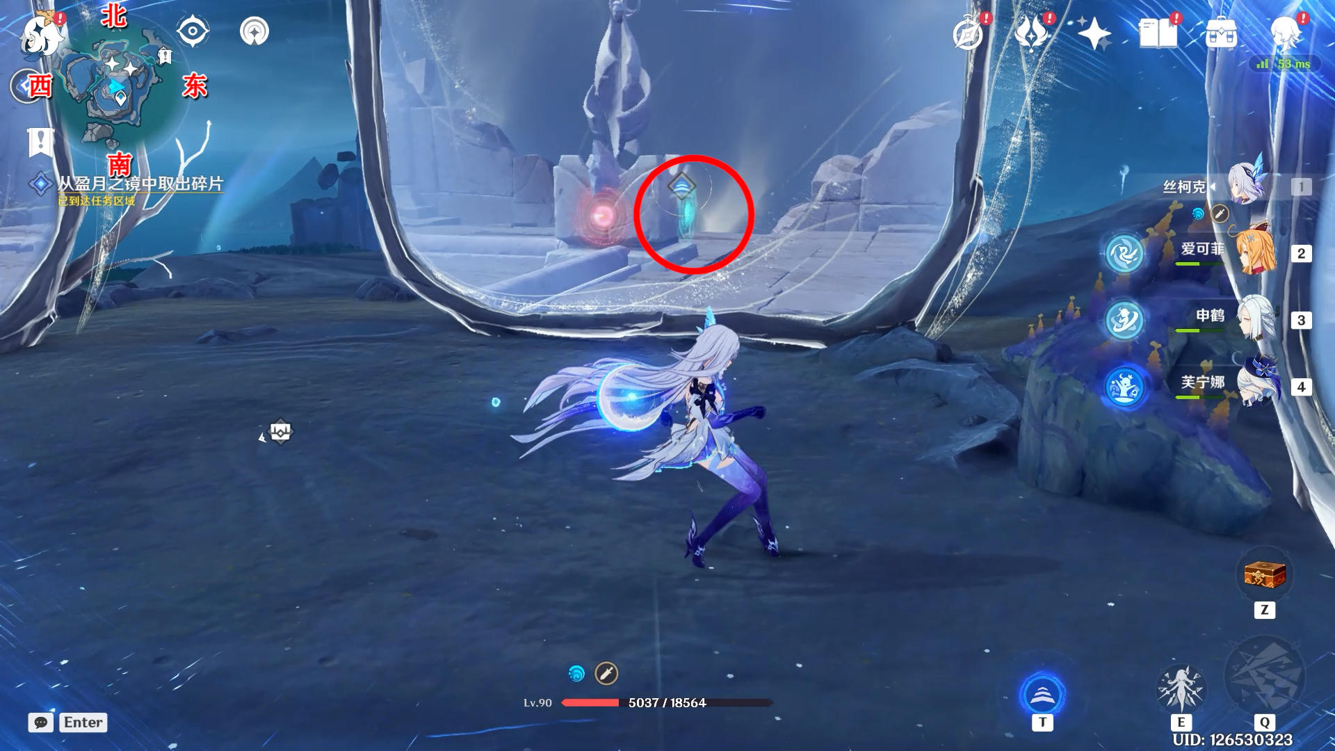 进入蓝圈跳起来碰一下月灵