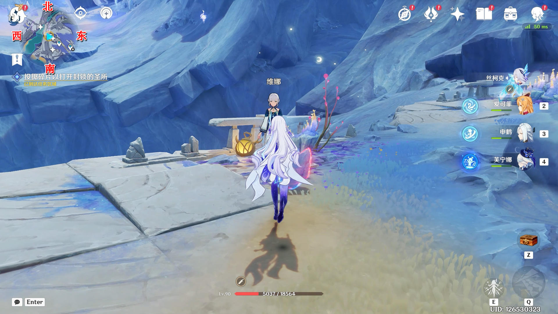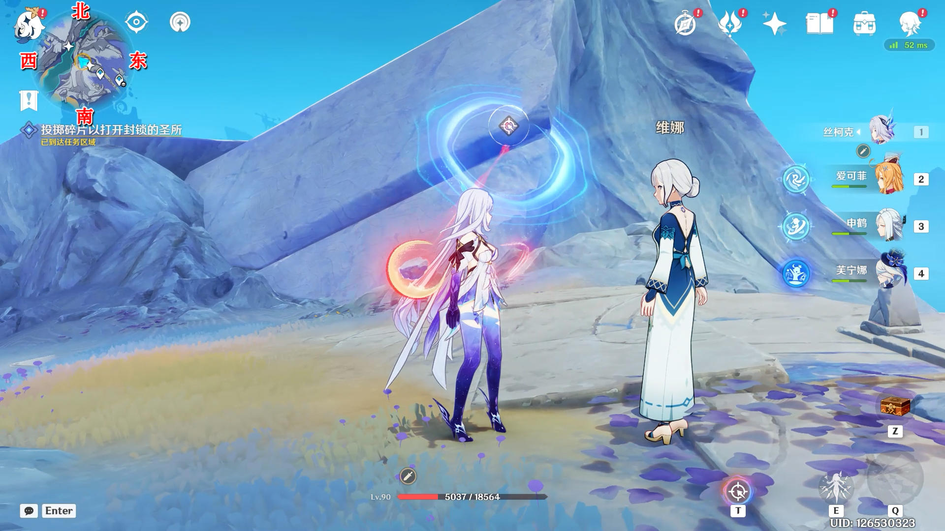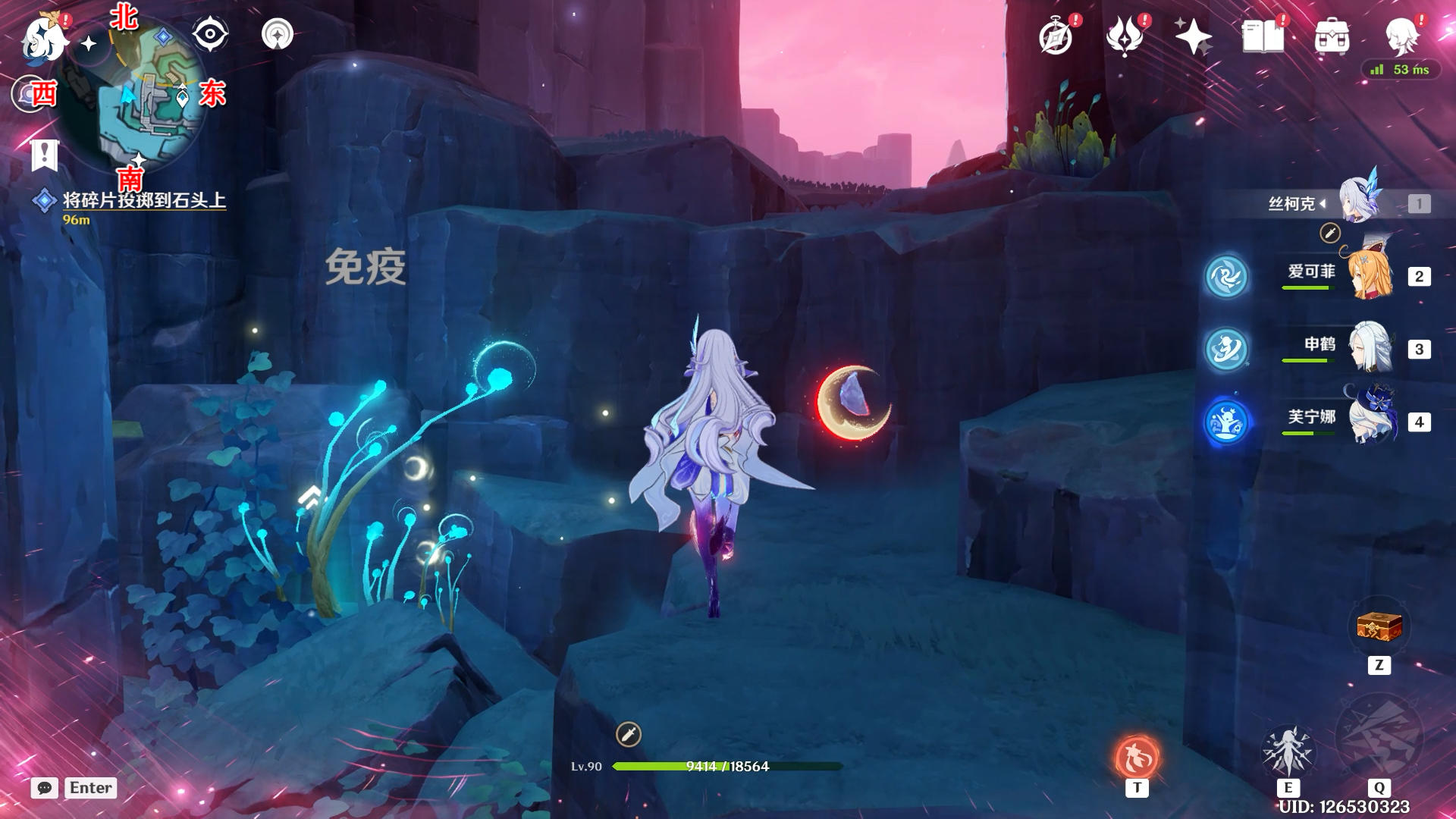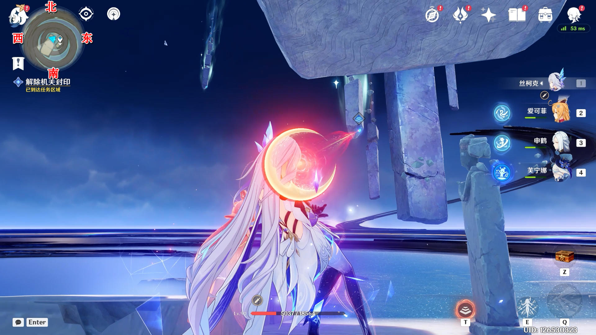 进入蓝圈跳起来碰一下月灵
