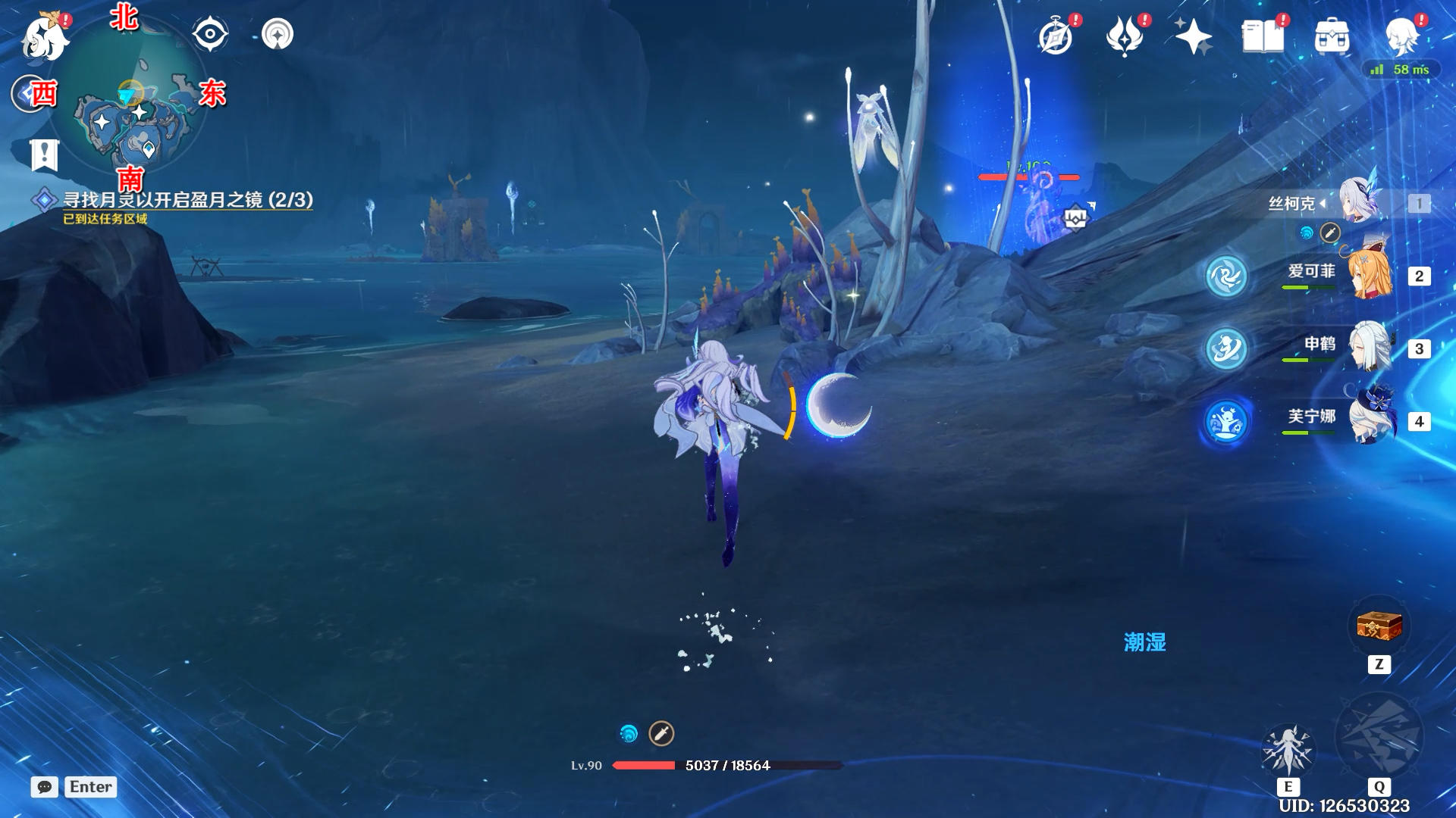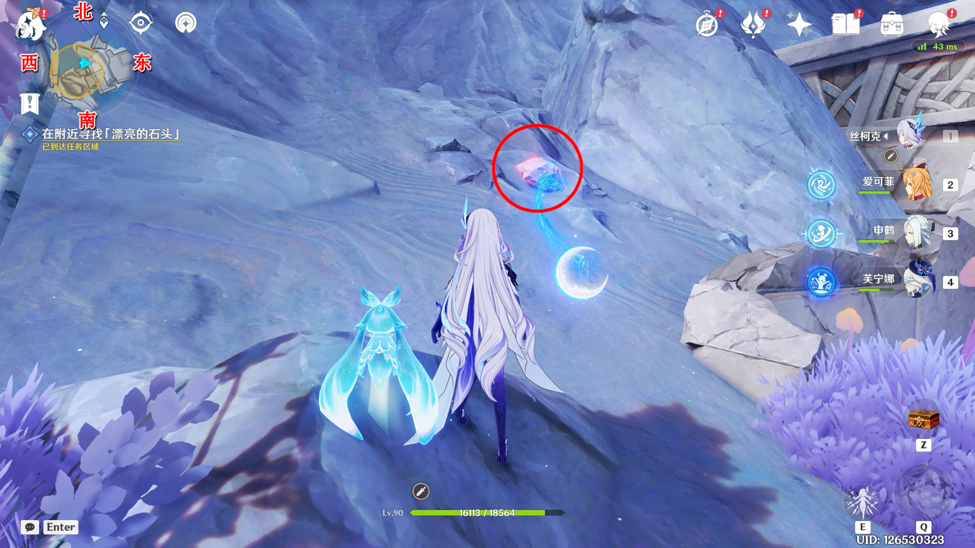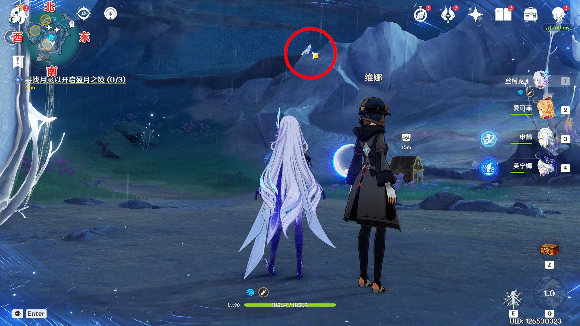 向西南方向看,触碰一下月灵