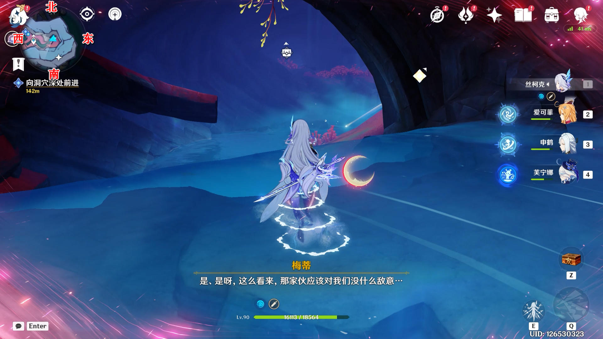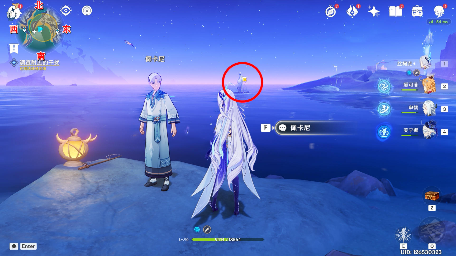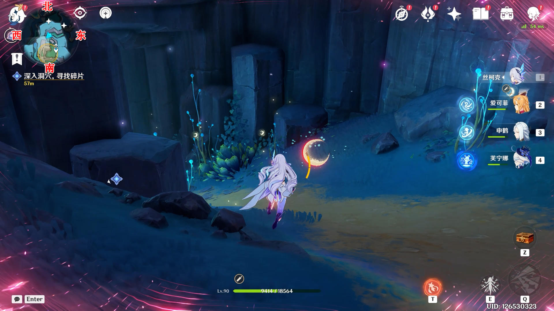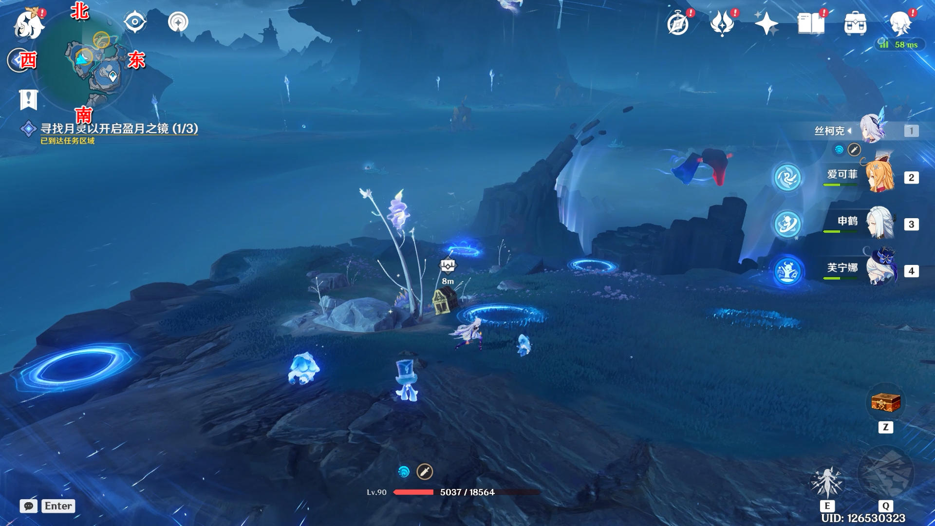 向西南方向看,触碰一下月灵