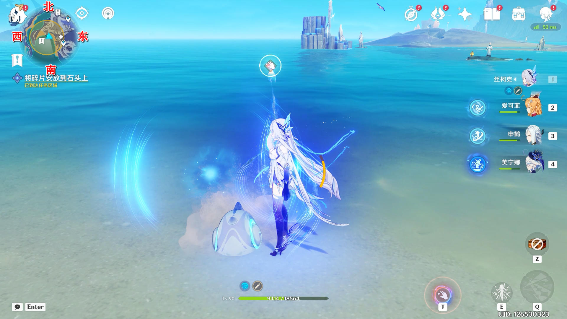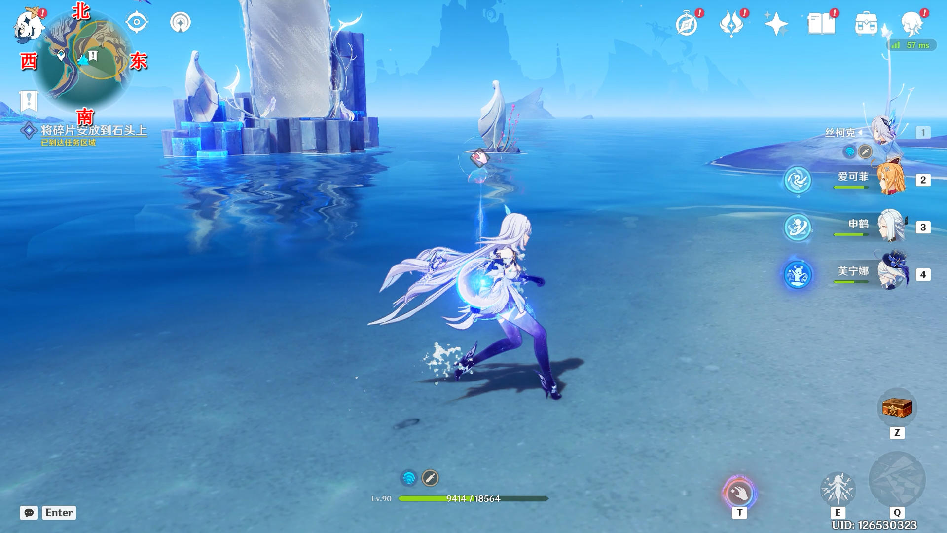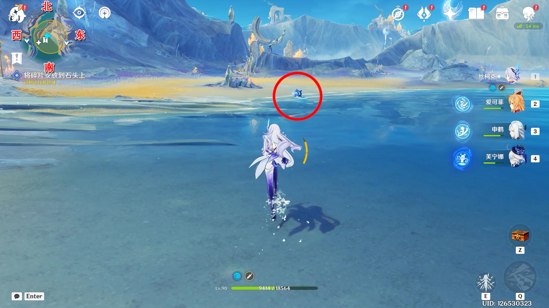 打一下海螺看向西南方向,拾取水里的碎片