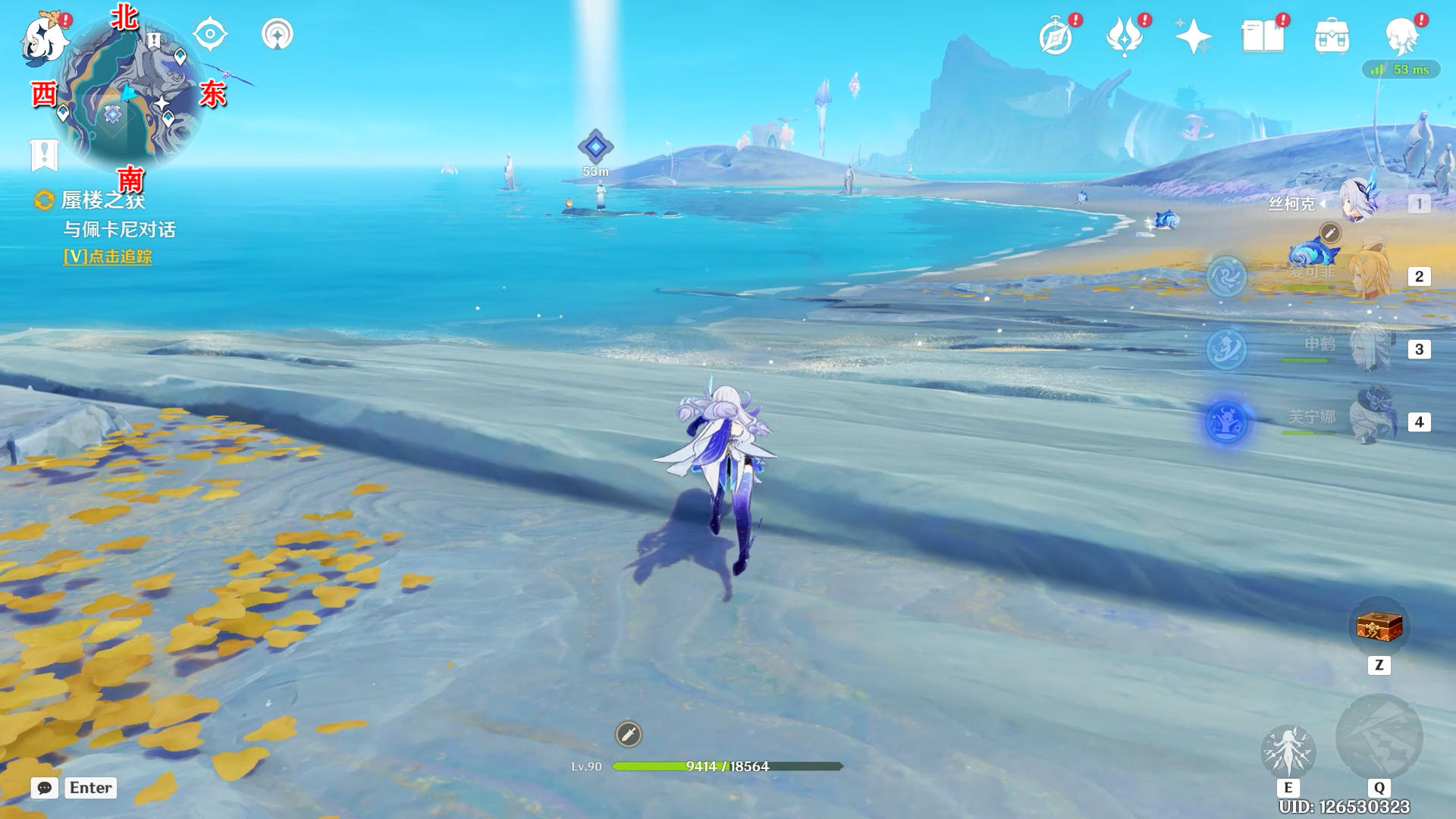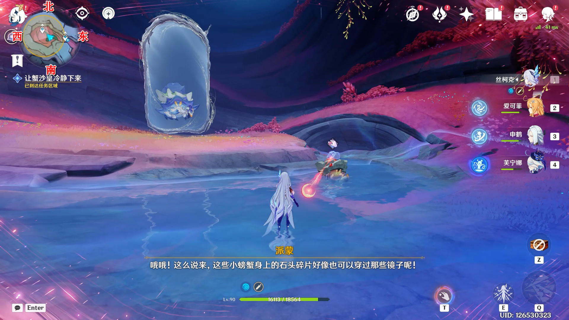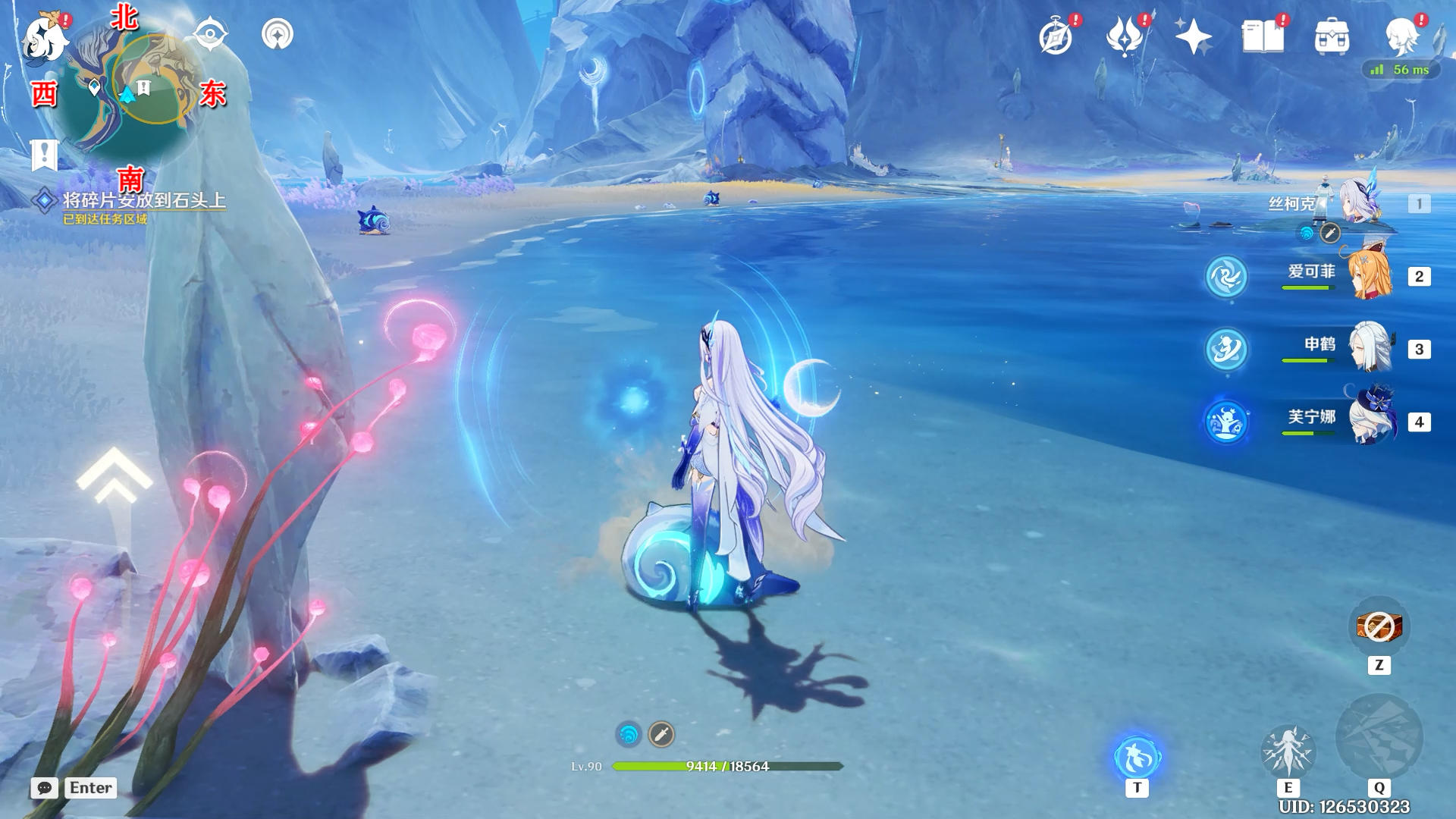 打一下海螺看向西南方向,拾取水里的碎片