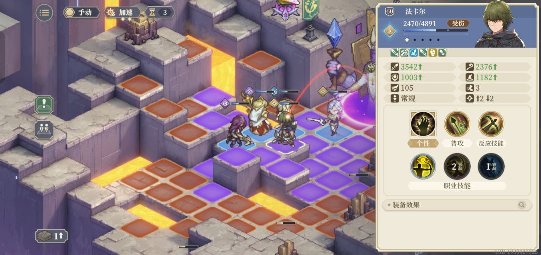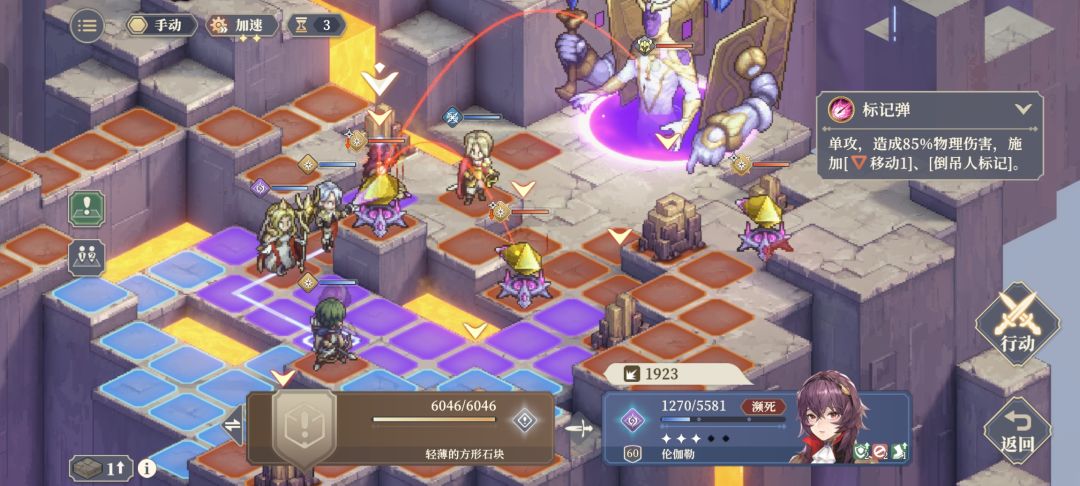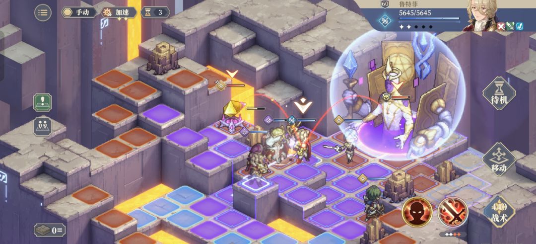 步骤图3:boss开盾后的aoe能打到旗子放完再插旗,这里岩石被打掉,法卡尔移到最左边,让炮台打得到法卡尔触发警戒。