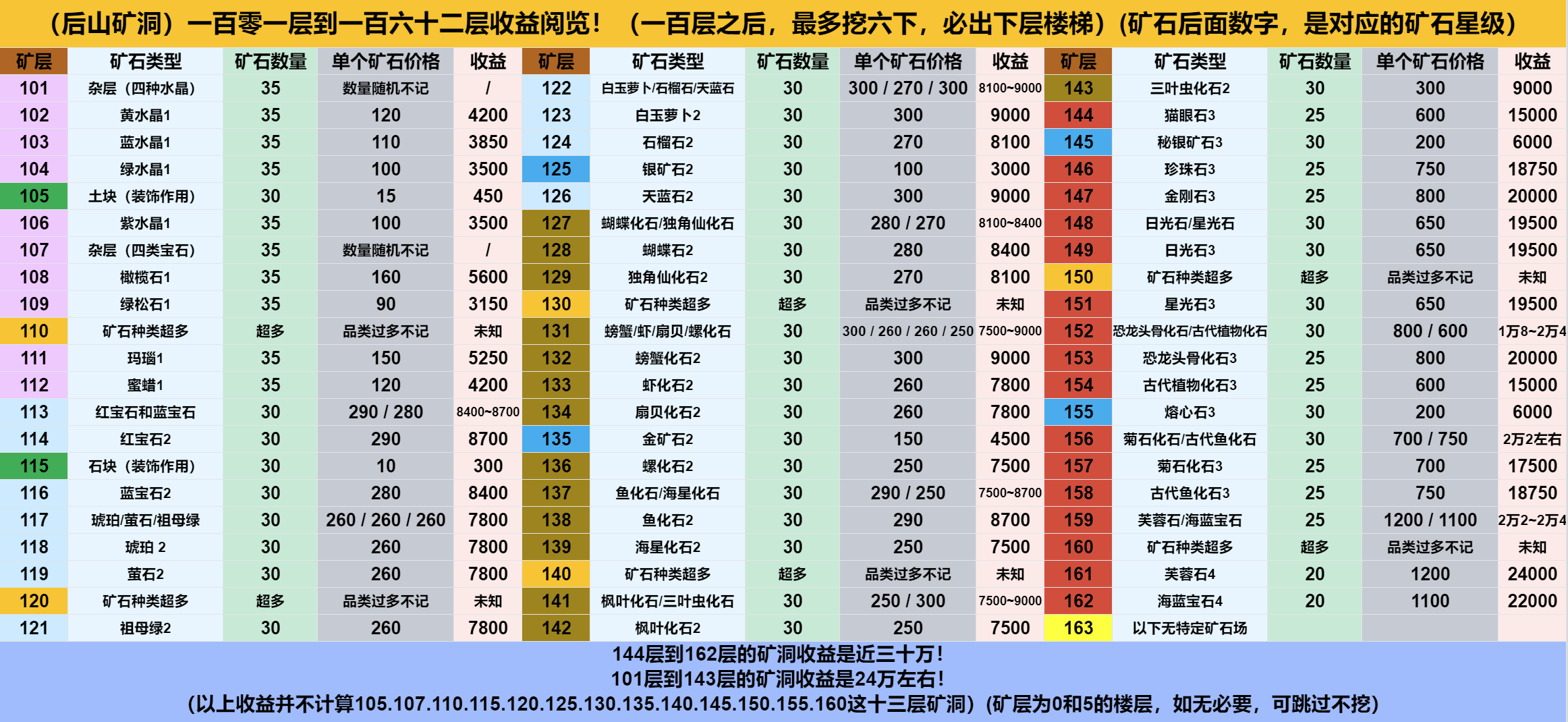 PS2:若带的是九组顶级蔬果汁,挖完144层到162层之后,可尝试从181层开挖到199层,除去190层不挖,它的收益也是不比144层到162层差!