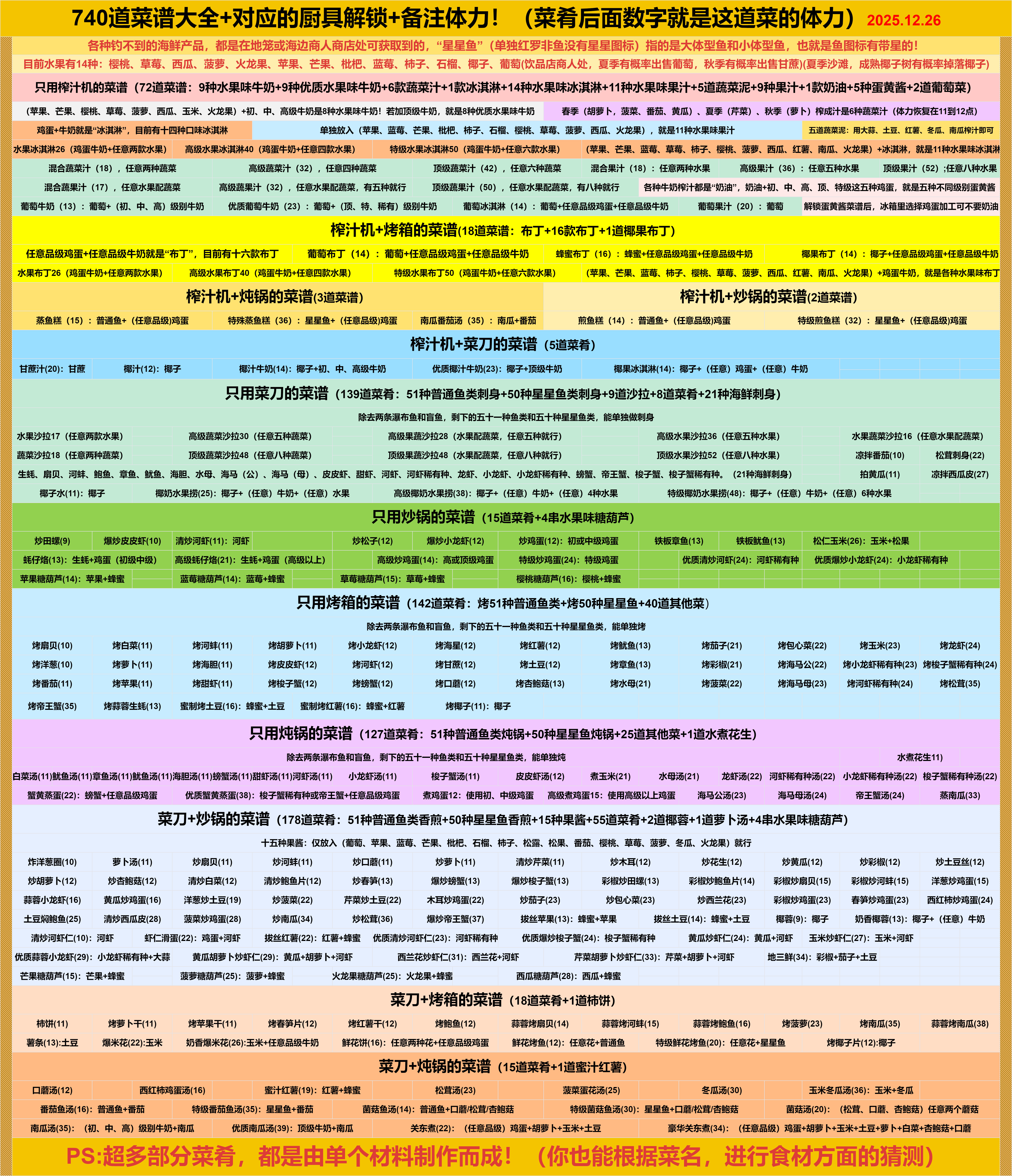 (740道菜谱大全+对应的厨具解锁+备注体力)