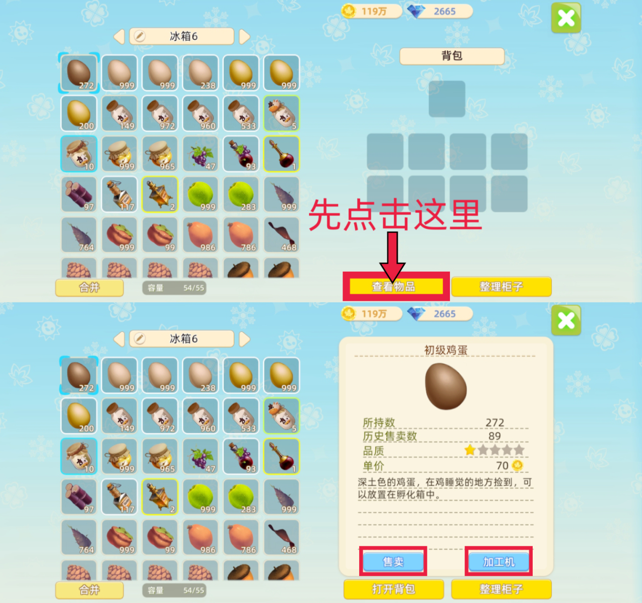 tips:可在冰箱里,直接点击各种动物产物进行加工或售卖!