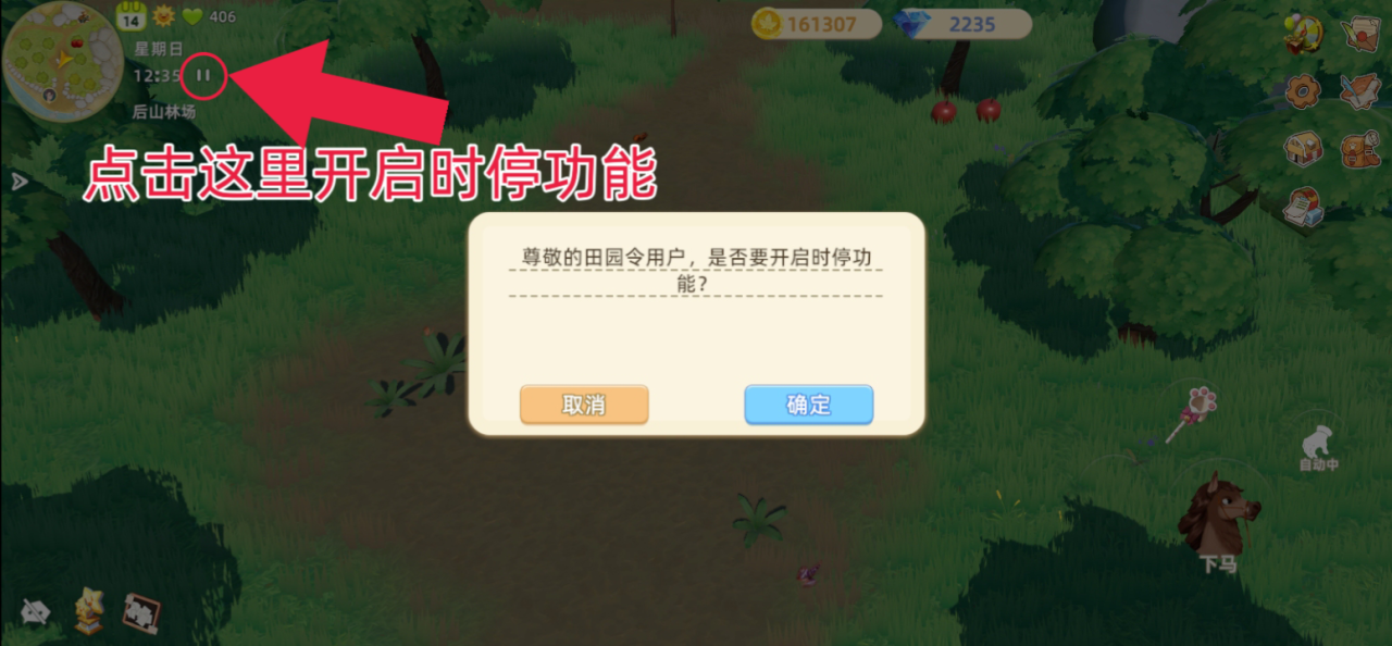 这是68月卡独有权利,开启时停功能后,游戏里的时间将会暂停!这个功能也可以用于你的好友家园!