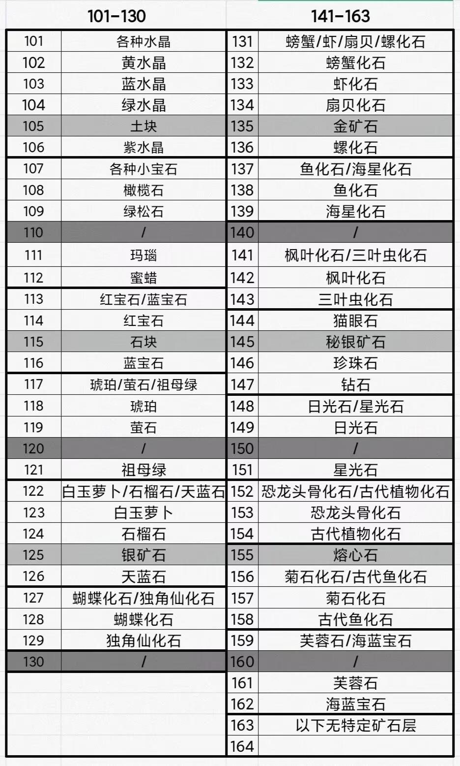 以前玩家总结的矿层宝石分布图,现任版本依样能通用