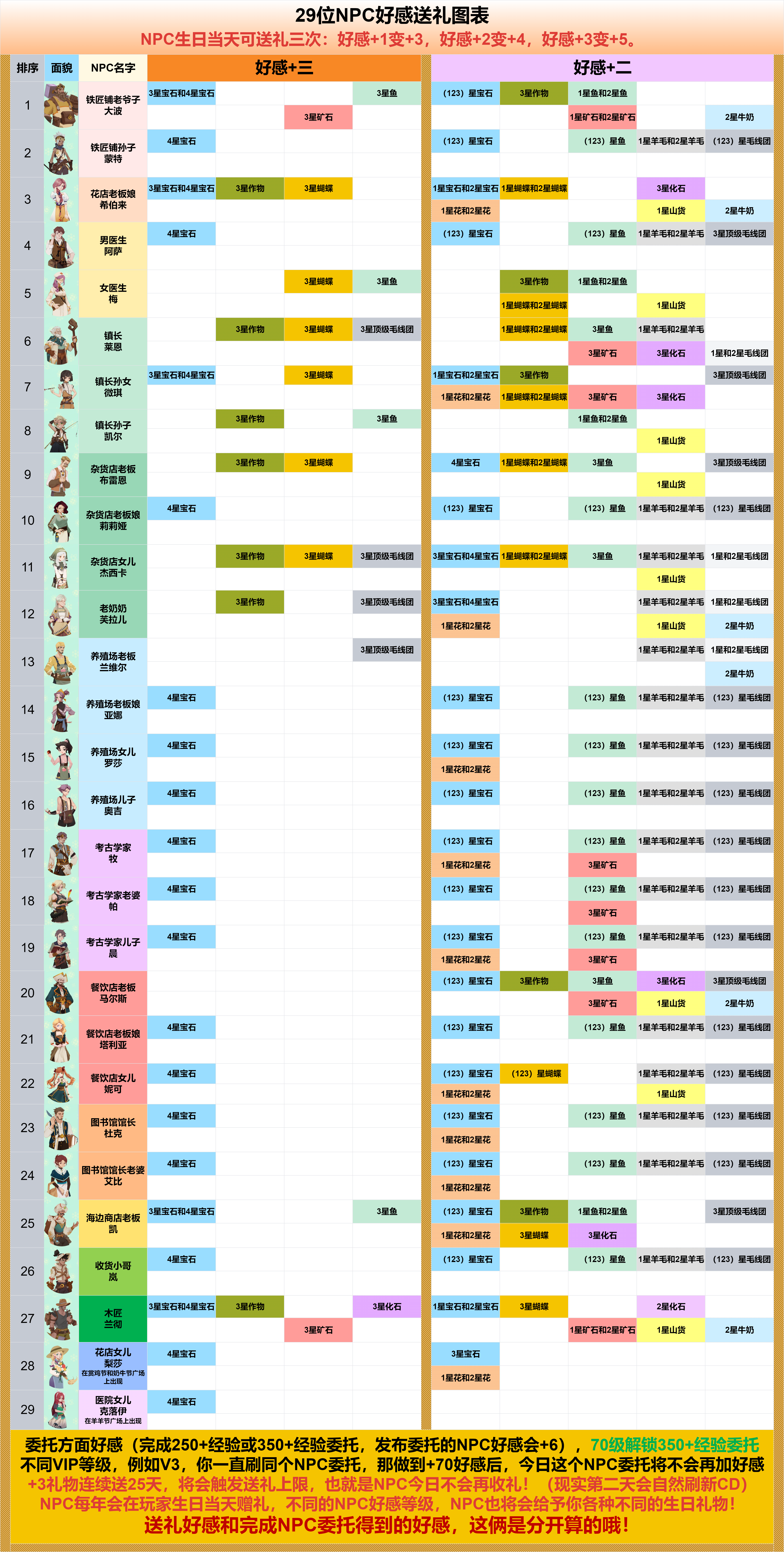 (29位NPC好感送礼图表)