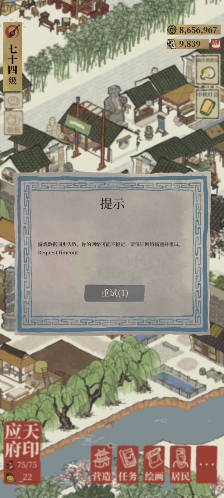 今天我反反复复一直收到提示“游戏数据同步失败,你的网络可能不稳定,请保证网络畅通并重试。Request timeout”,完全玩不了游戏!
