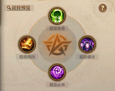 宙斯的战技组合遵循 “攻防一体,针对调整” 的思路。「致命」+「必杀」最大化其输出上限,「健壮」是增加的生命是宙斯核心属性,「格挡」提供通用防御。在面对特定连击阵容时,则将「格挡」换为「抗连击」以实现最佳对抗效果。