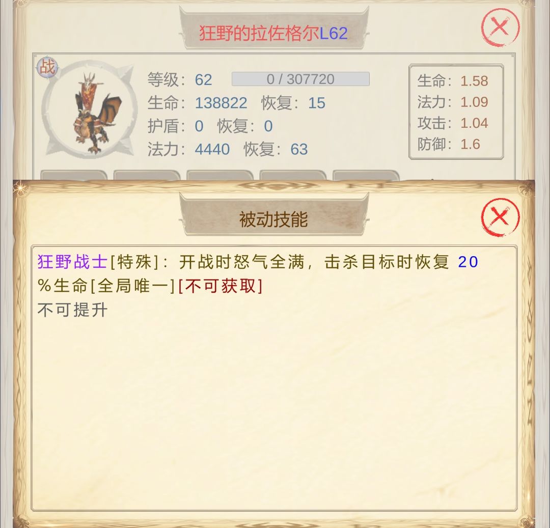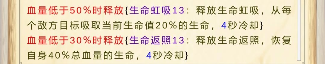 狂野的拉佐格尔:敌方召唤物每死一只回复自身20%最大生命值(召唤时间到了也算)