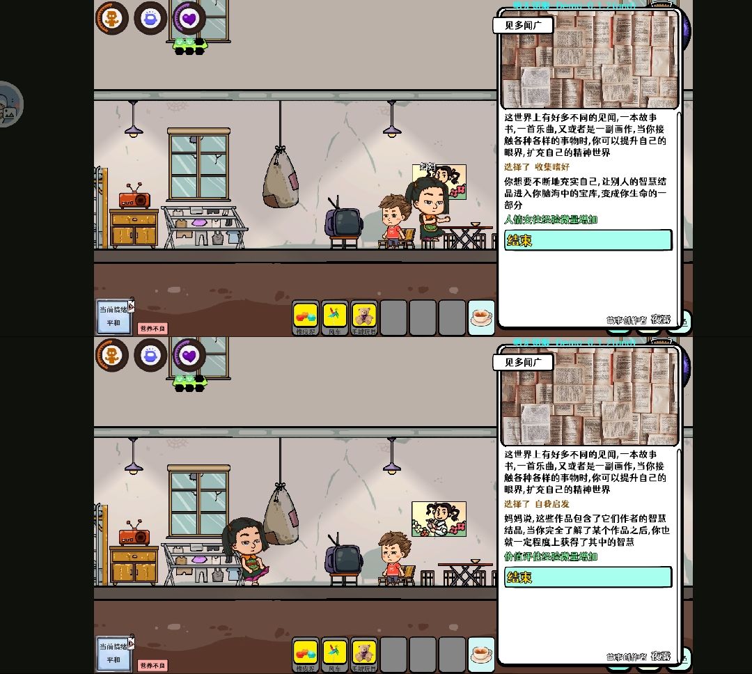 目前就做了这些,突然想到记录才发现以前基本都是选一个选项,其他的都不清楚,好几天没玩有些记不清了(摸到了旧版觉得更好玩……)