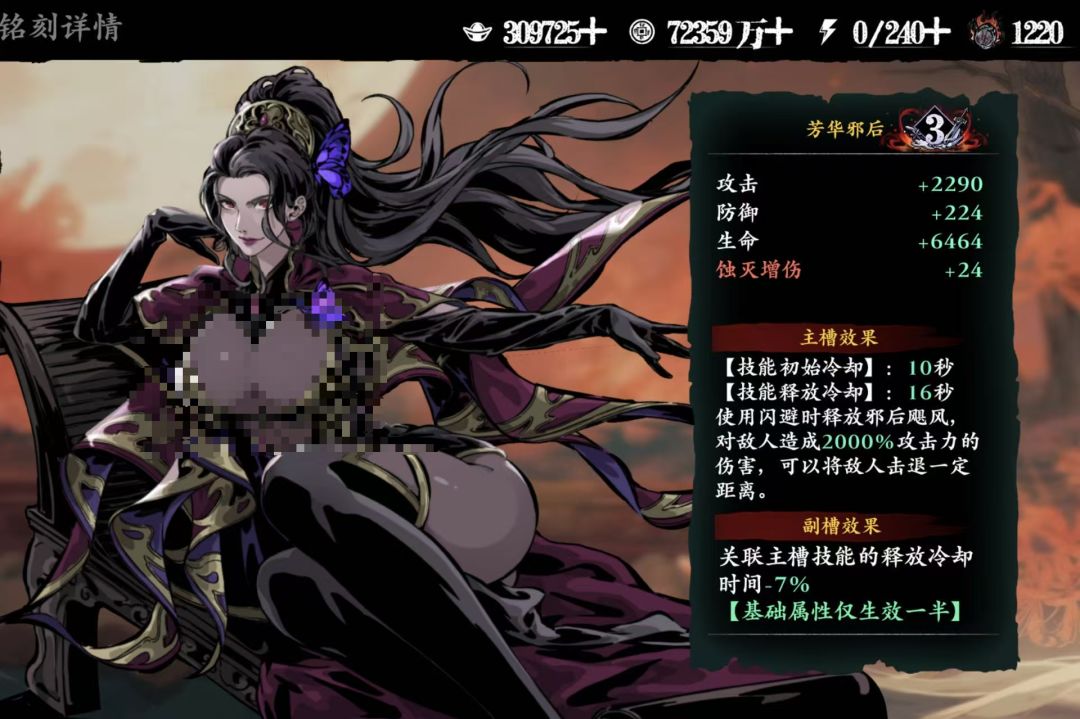 对于新玩家提升很大,有全心法唯一一张普怪伤害提升对于无尽和爬塔有很大的提升,邪后及其羁绊的升级版,对于新手伤害也许没有肉眼可见的提升,但是在机制上却是非常大的提升,且有PVE眩晕效果控怪好用;