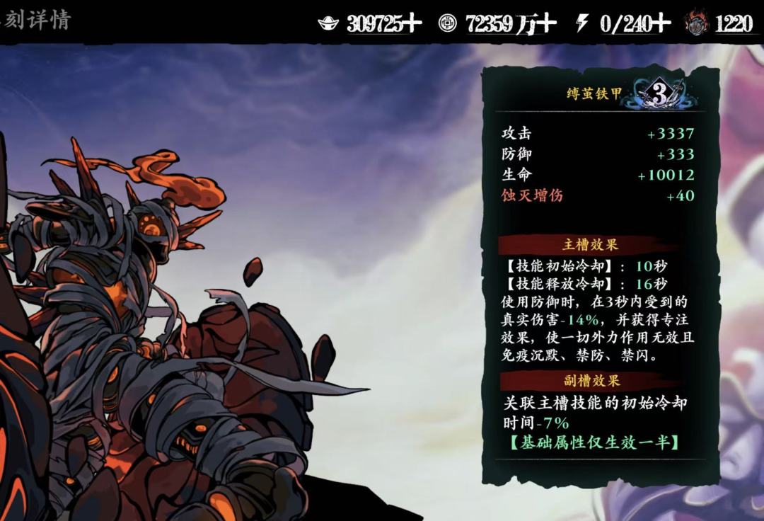 对于老玩家提升很大,被和谐过一次,不过也是非常强的防御铭刻,虽然便宜但是实用性高,可以击倒,练度低搭配邪后可以双击倒。