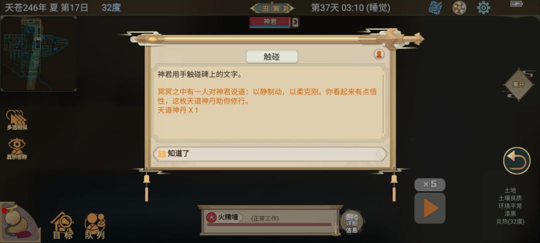 隐藏点三:按顺序《以静制动》触摸石碑,掉落“天道神丹”。